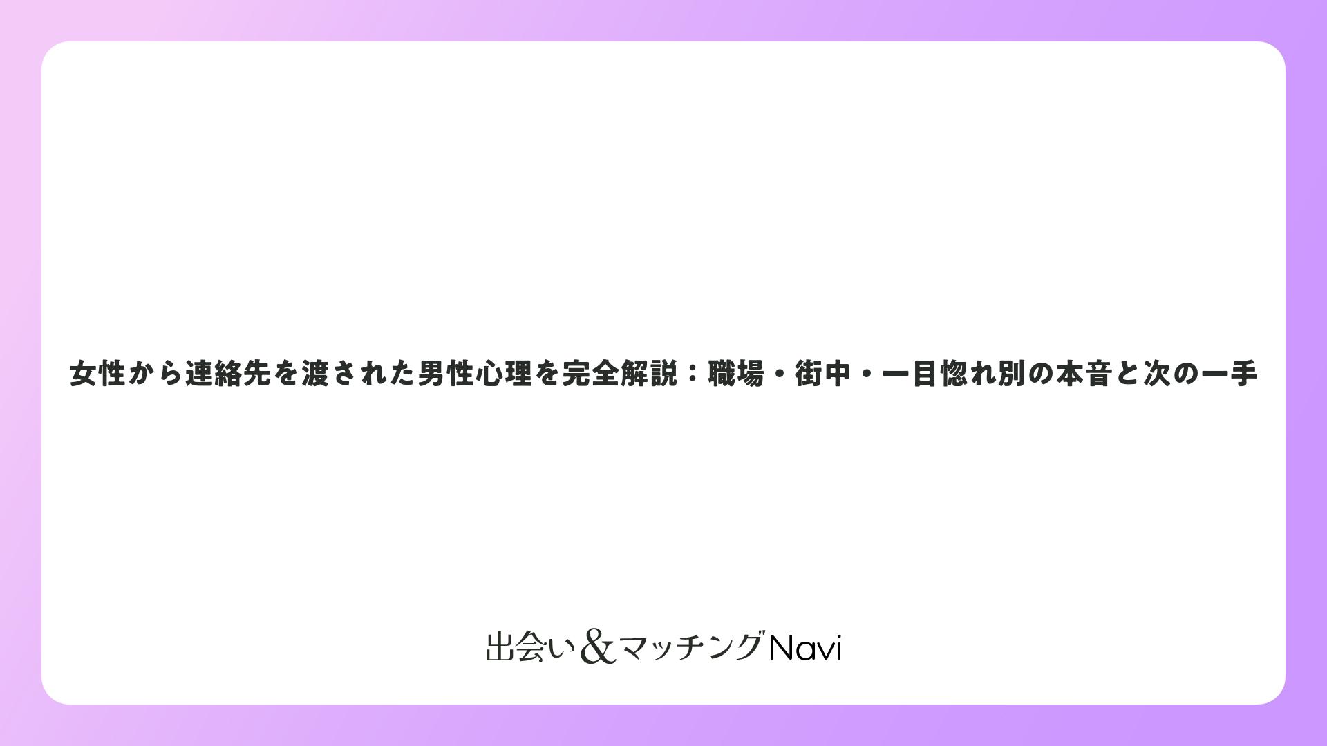 女性から連絡先を渡された男性心理を完全解説:職場・街中・一目惚れ別の本音と次の一手をまとめました