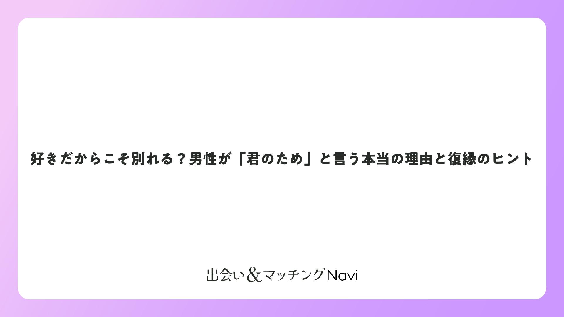 好きだからこそ別れる?男性が「君のため」と言う本当の理由と復縁のヒントをまとめました