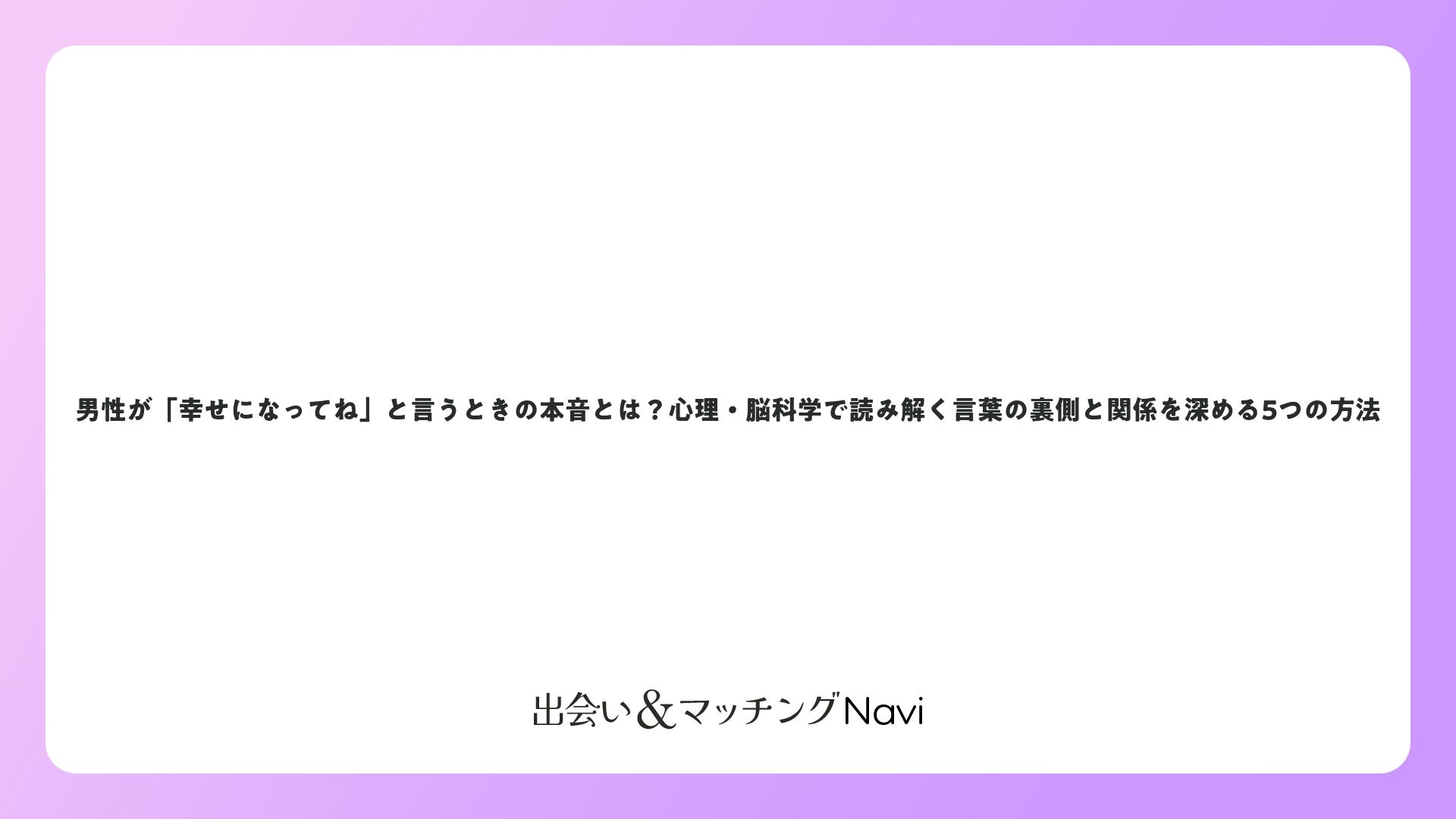 男性が「幸せになってね」と言うときの本音とは?心理・脳科学で読み解く言葉の裏側と関係を深める5つの方法をまとめました