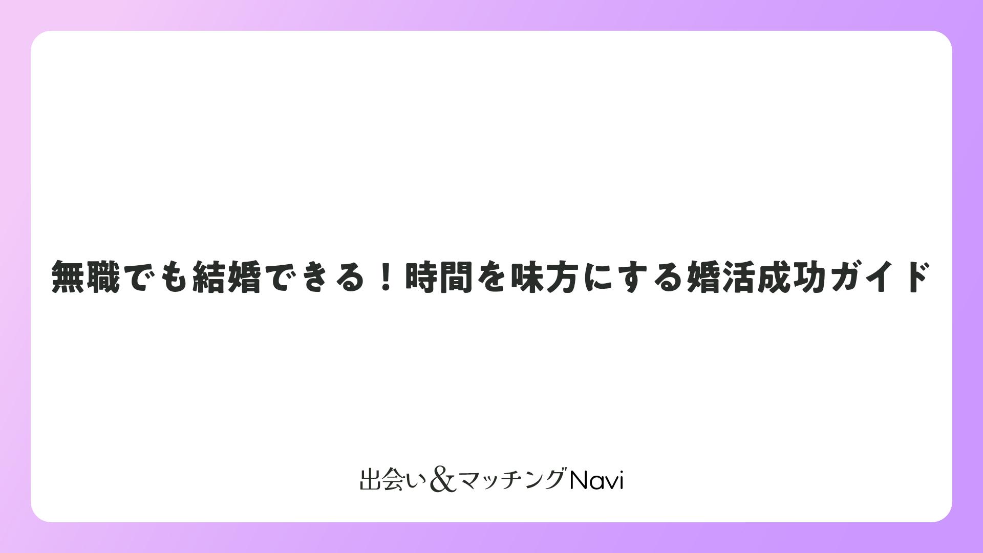 無職でも結婚できる!時間を味方にする婚活成功ガイドをまとめました