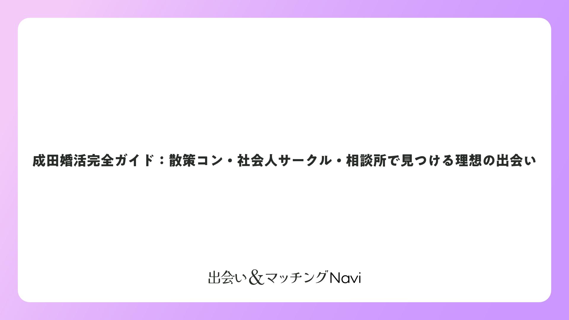成田婚活完全ガイド:散策コン・社会人サークル・相談所で見つける理想の出会いをまとめました