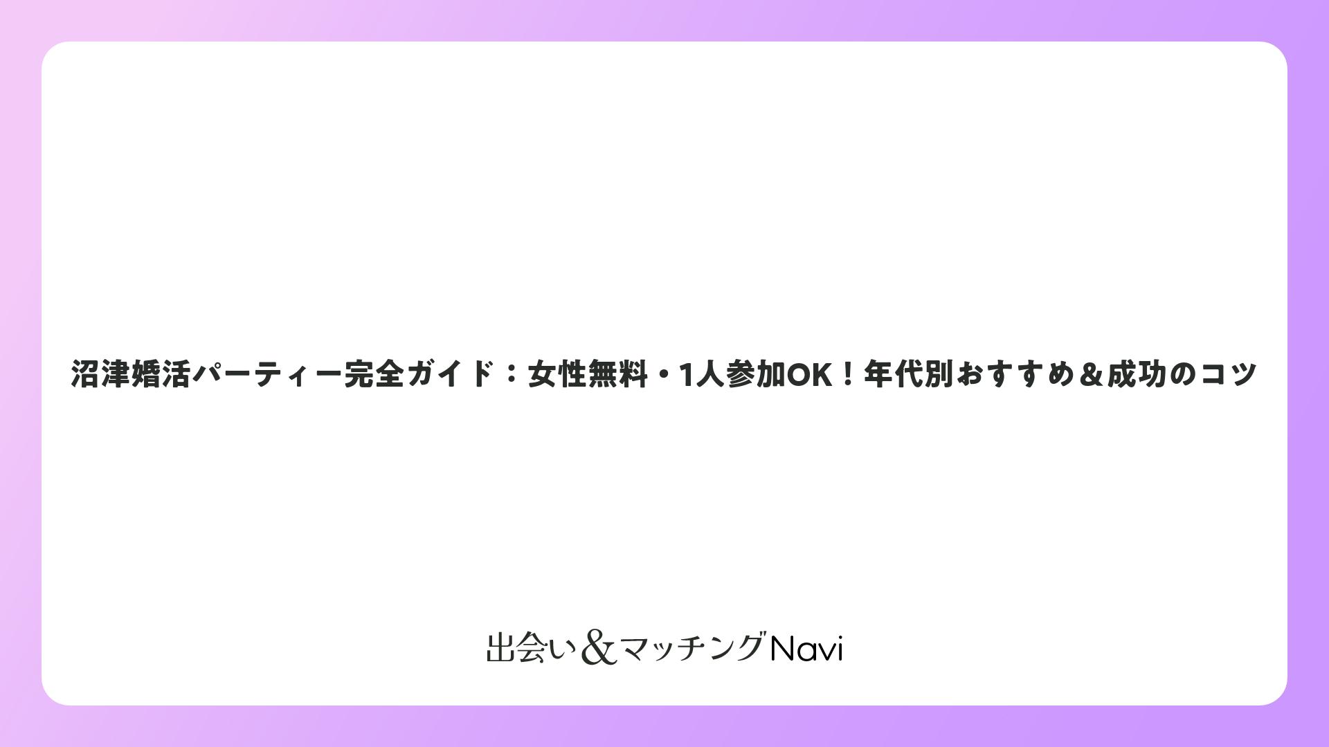 沼津婚活パーティー完全ガイド:女性無料・1人参加OK!年代別おすすめ&成功のコツをまとめました
