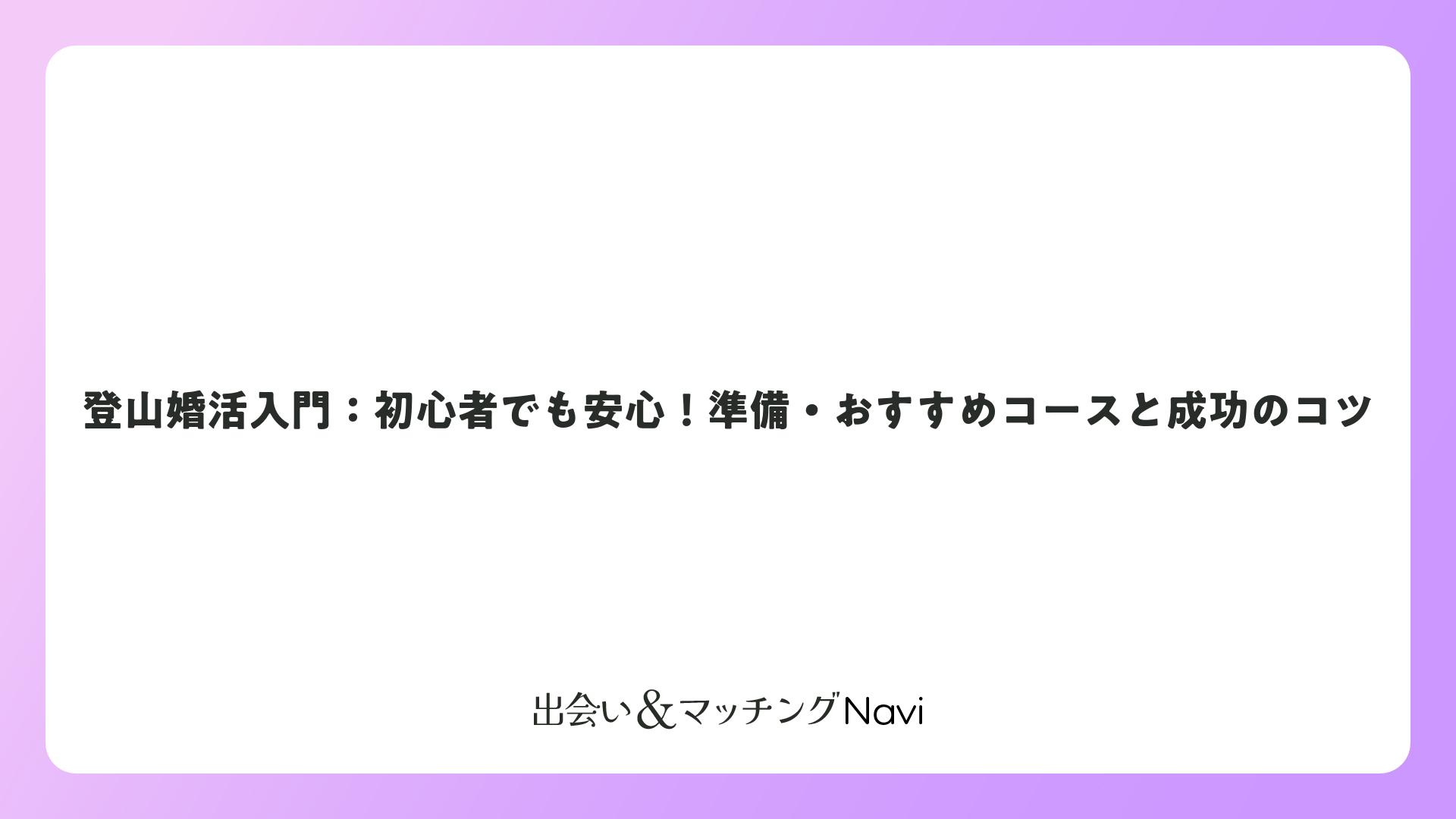 登山婚活は、自然の中で健康的に出会いを楽しめる素晴らしい婚活方法です。共通の体験を通じて価値観がわかりやすく、初心者でも参加しやすいイベントが豊富にあります。積極的に参加して、素敵なパートナーを見つけましょう。