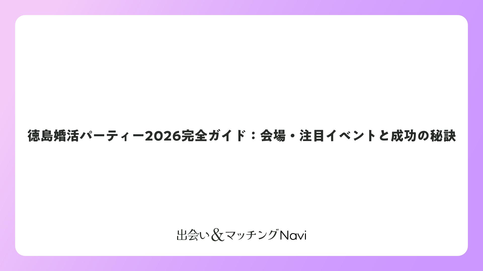 徳島婚活パーティー2026完全ガイド:会場・注目イベントと成功の秘訣をまとめました