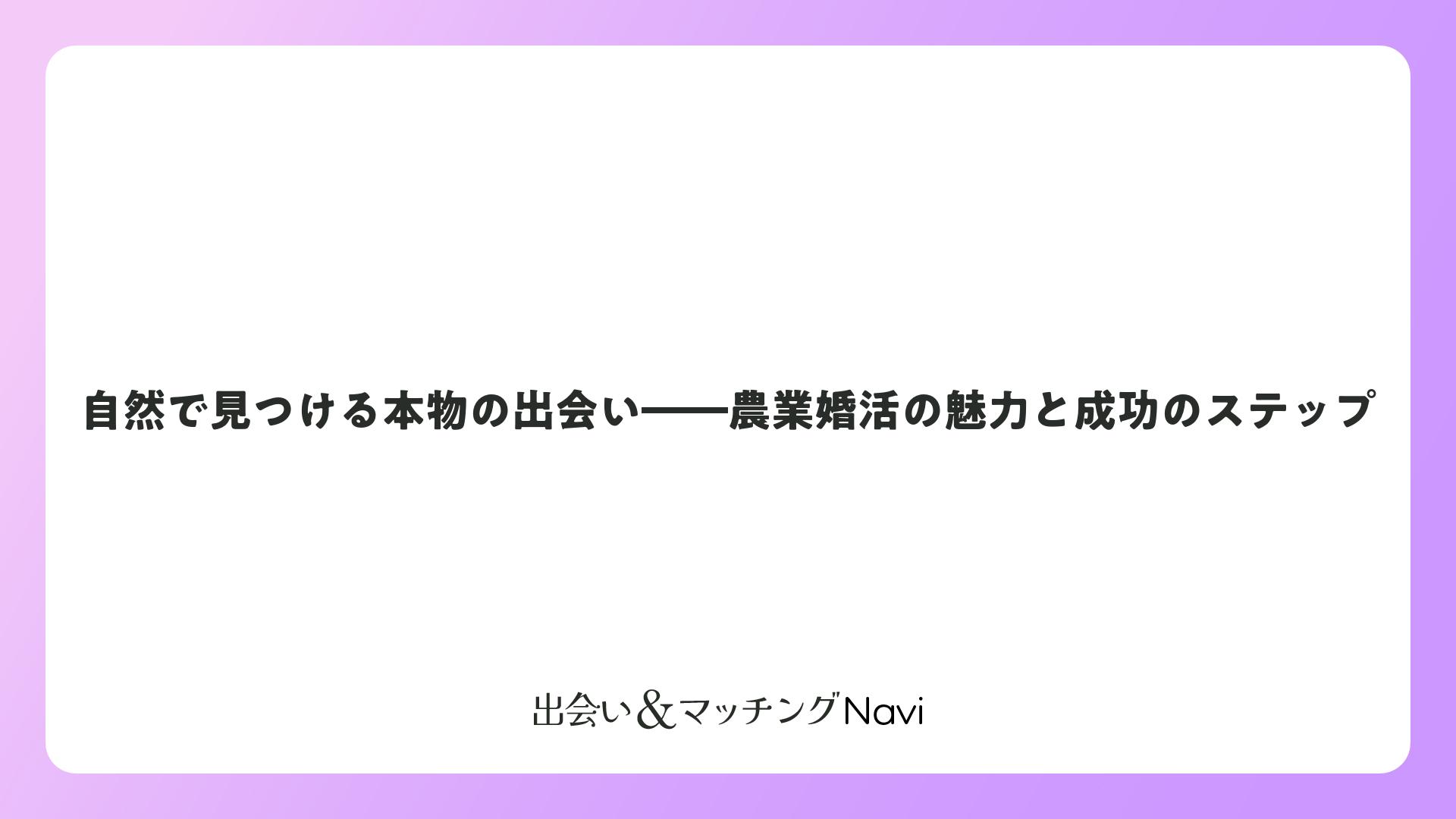 農業婚活は、自然豊かな環境で共通の価値観を持つパートナーと出会える、現代の婚活トレンドとして注目を集めています。この記事では、農業婚活の魅力、イベントの種類、参加のメリット、成功のコツを詳しく解説し、読者の皆さんが積極的に取り組めるよう役立つ情報を提供します。