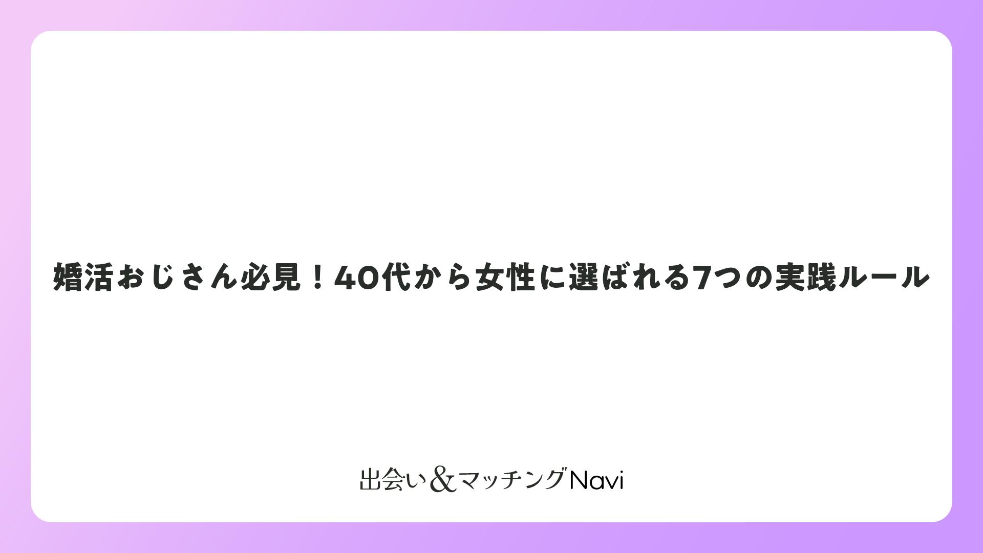 婚活おじさん必見!40代から女性に選ばれる7つの実践ルールをまとめました