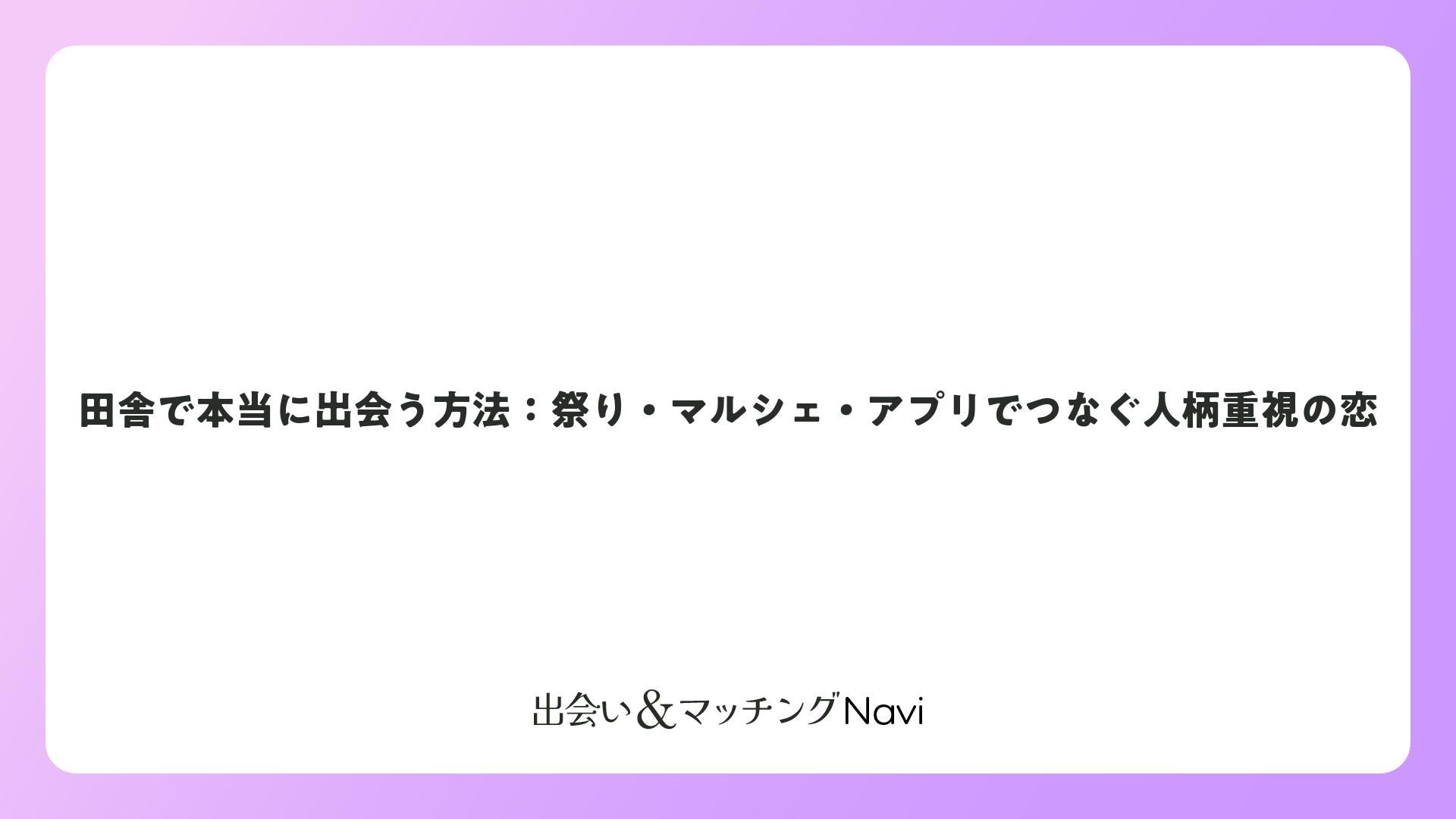 田舎で本当に出会う方法:祭り・マルシェ・アプリでつなぐ人柄重視の恋をまとめました