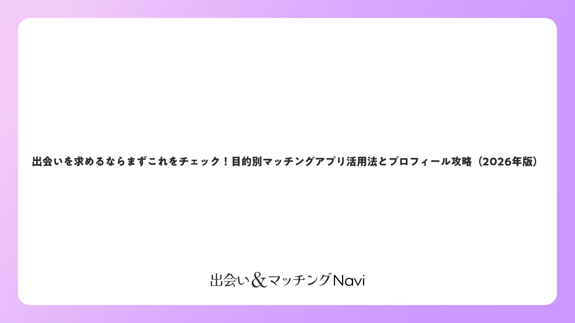 出会いを求めるならまずこれをチェック!目的別マッチングアプリ活用法とプロフィール攻略(2026年版)をまとめました