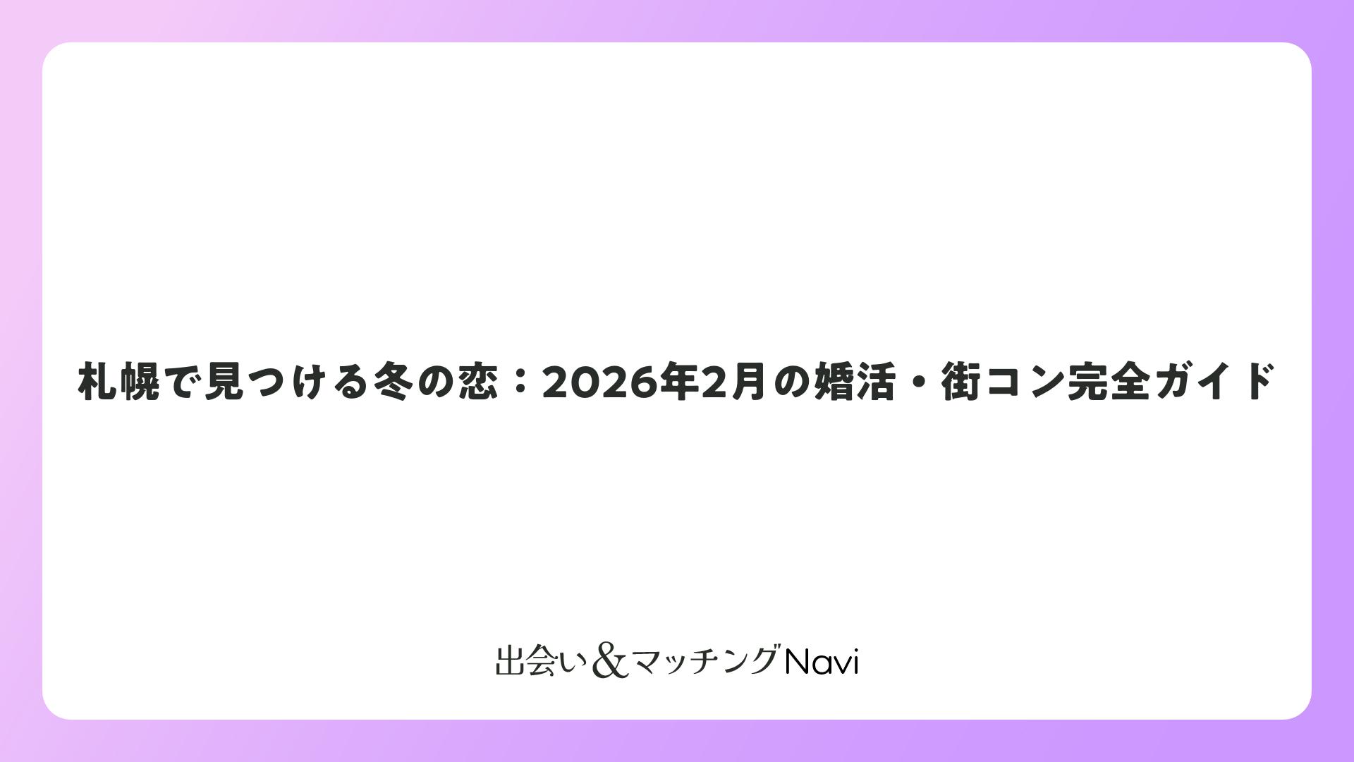 札幌で見つける冬の恋:2026年2月の婚活・街コン完全ガイドをまとめました