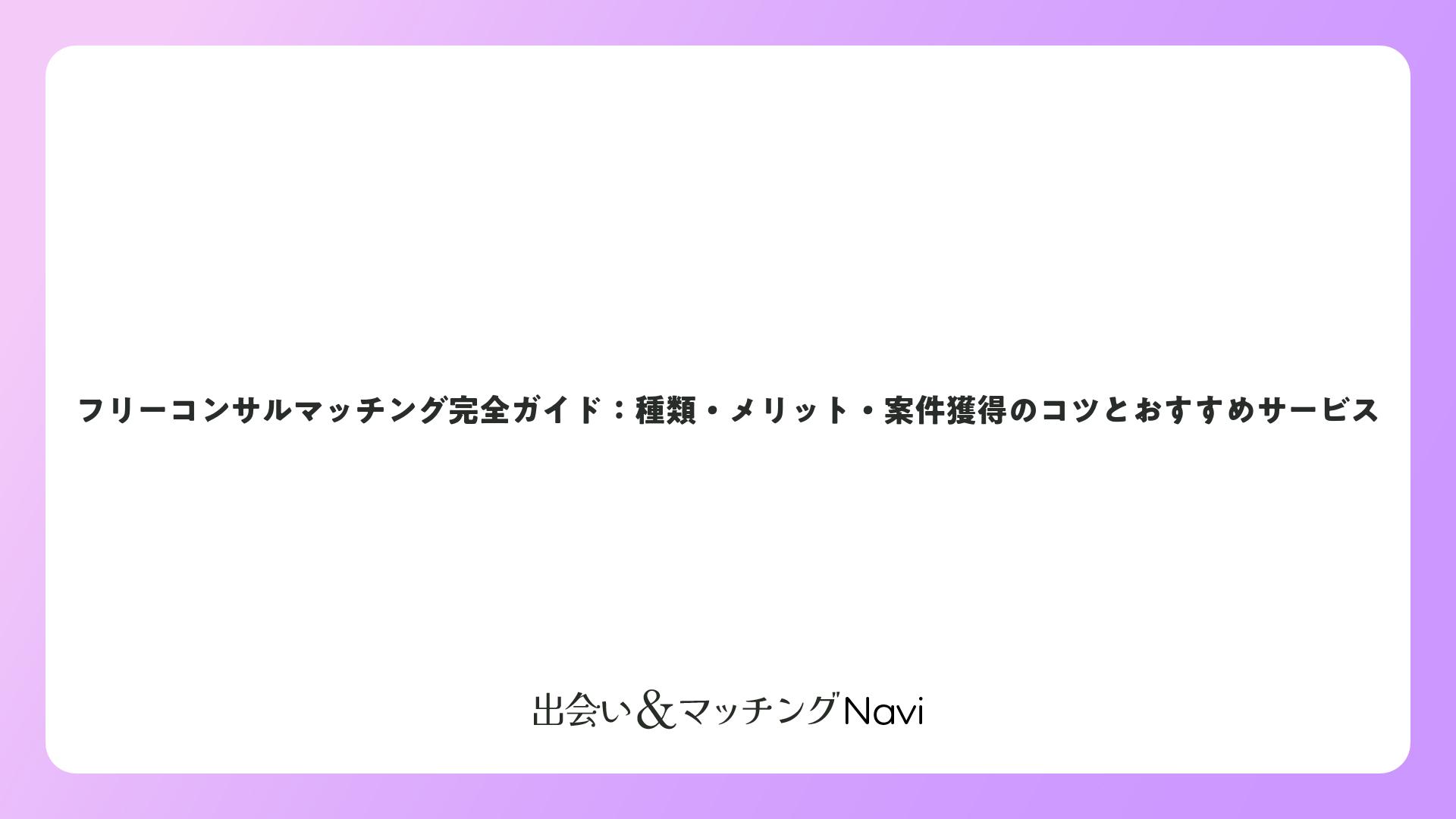 フリーコンサルマッチング完全ガイド:種類・メリット・案件獲得のコツとおすすめサービスをまとめました