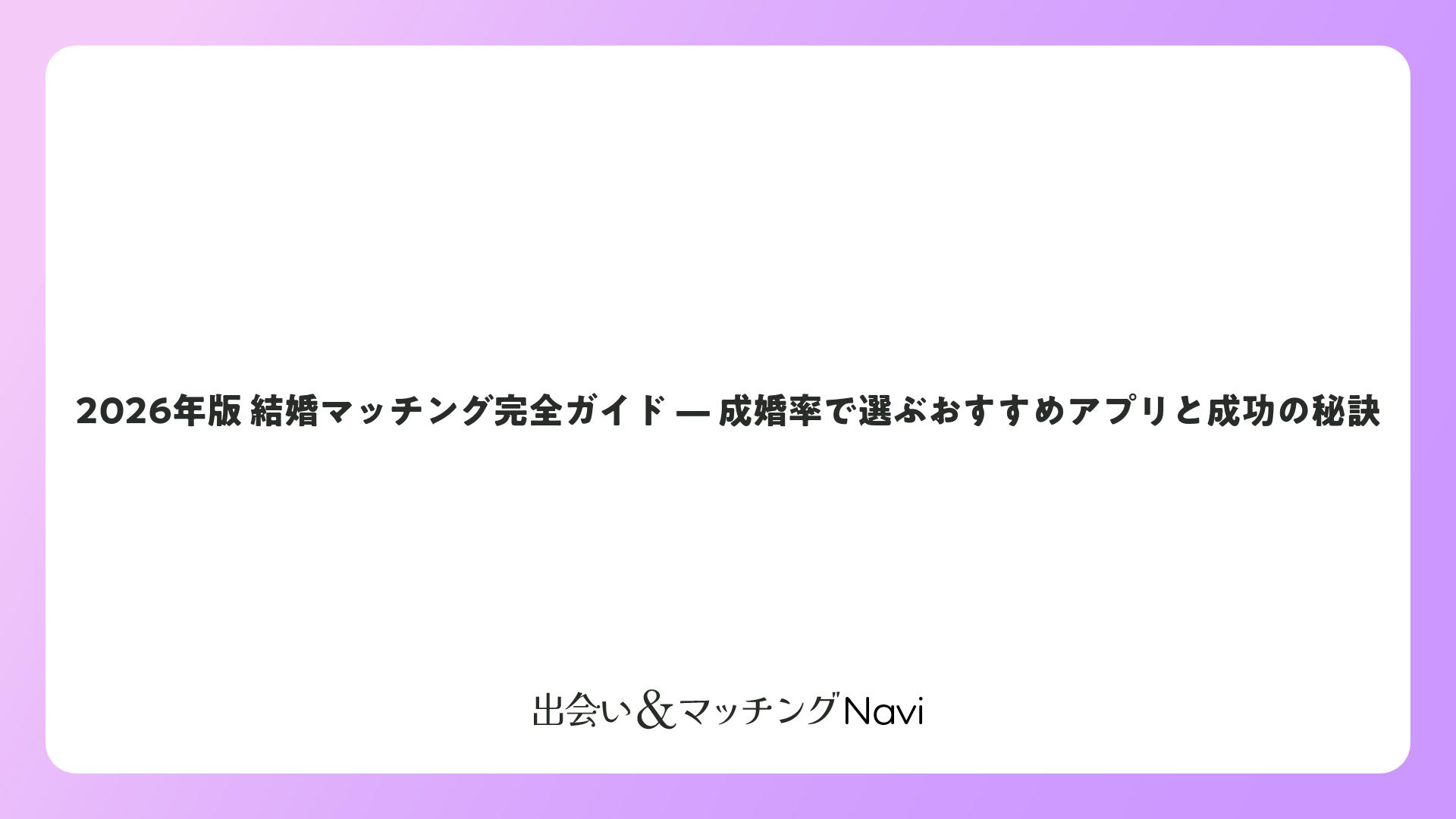 2026年版 結婚マッチング完全ガイド — 成婚率で選ぶおすすめアプリと成功の秘訣をまとめました