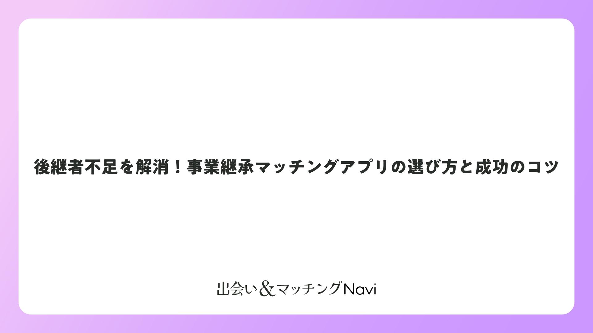 後継者不足を解消!事業継承マッチングアプリの選び方と成功のコツをまとめました