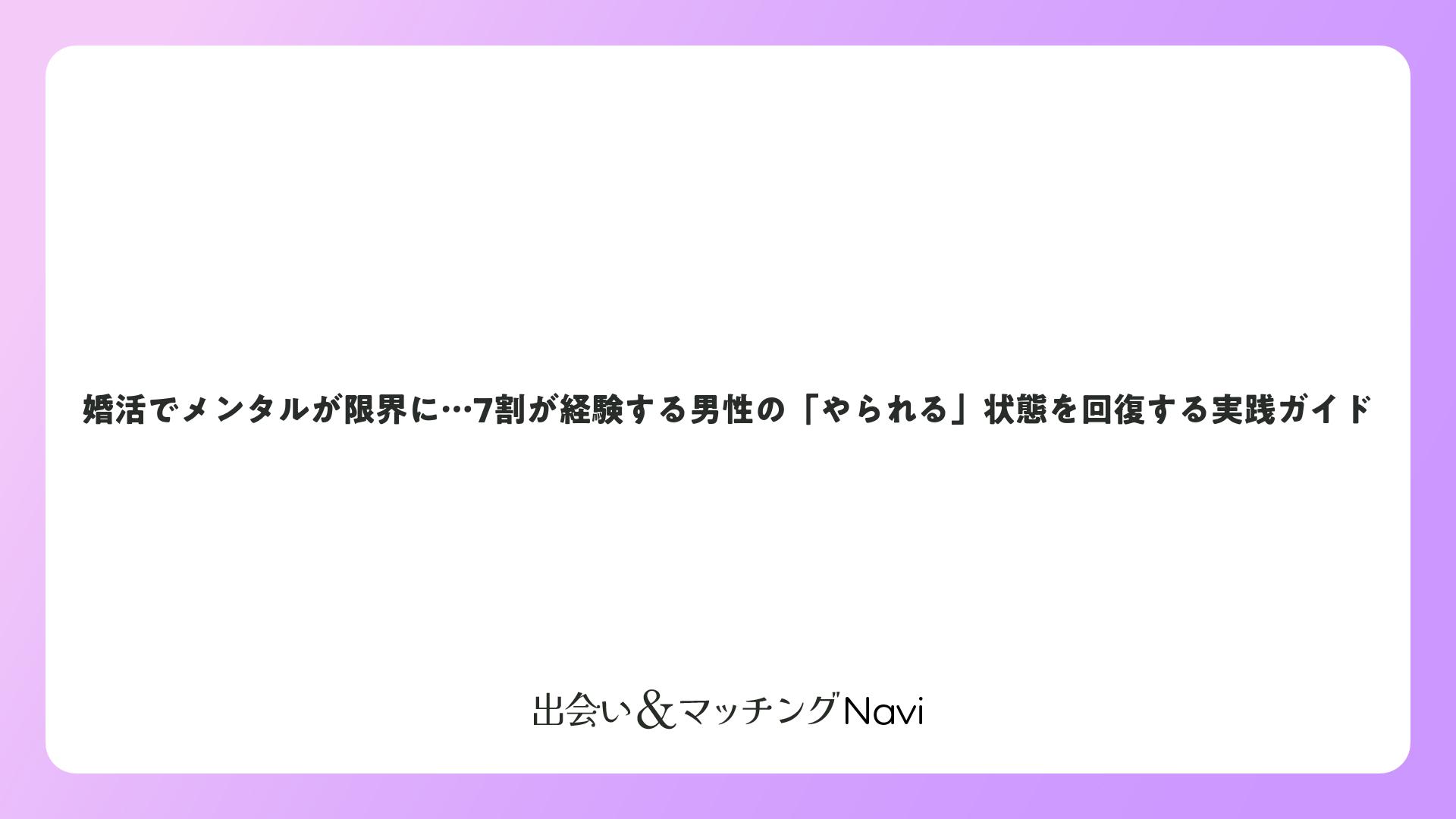婚活でメンタルが限界に…7割が経験する男性の「やられる」状態を回復する実践ガイドをまとめました