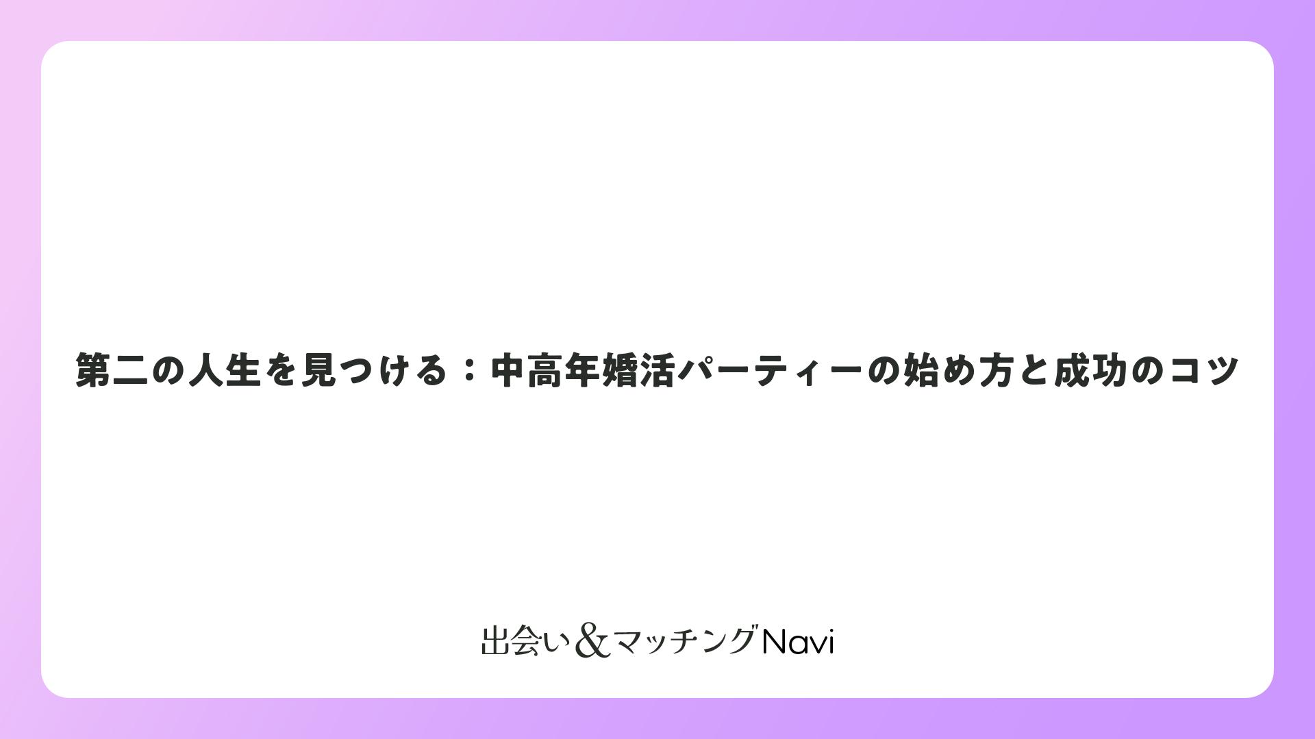 中高年婚活パーティーは、真剣な出会いと多様な企画で、第二の人生を豊かにする最適な場です。年齢の壁を超え、共感と喜びあふれるパートナーシップを築けます。まずは一歩踏み出して、自分らしい幸せを掴みましょう。
