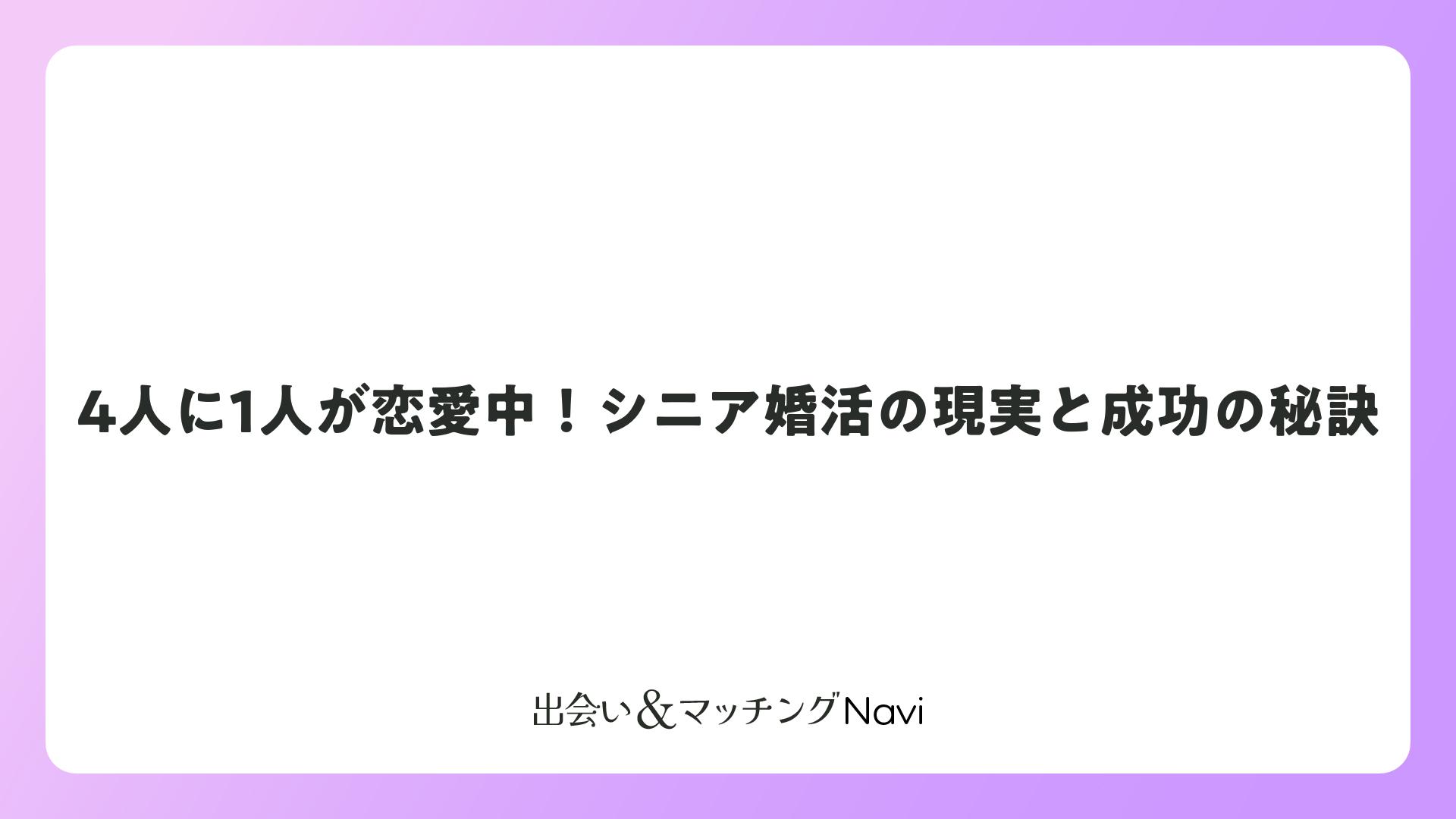 4人に1人が恋愛中!シニア婚活の現実と成功の秘訣をまとめました