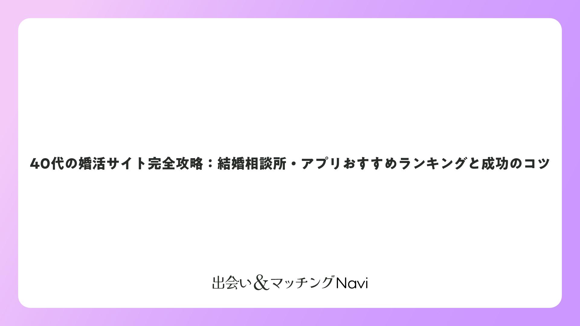 40代の婚活サイト完全攻略:結婚相談所・アプリおすすめランキングと成功のコツをまとめました