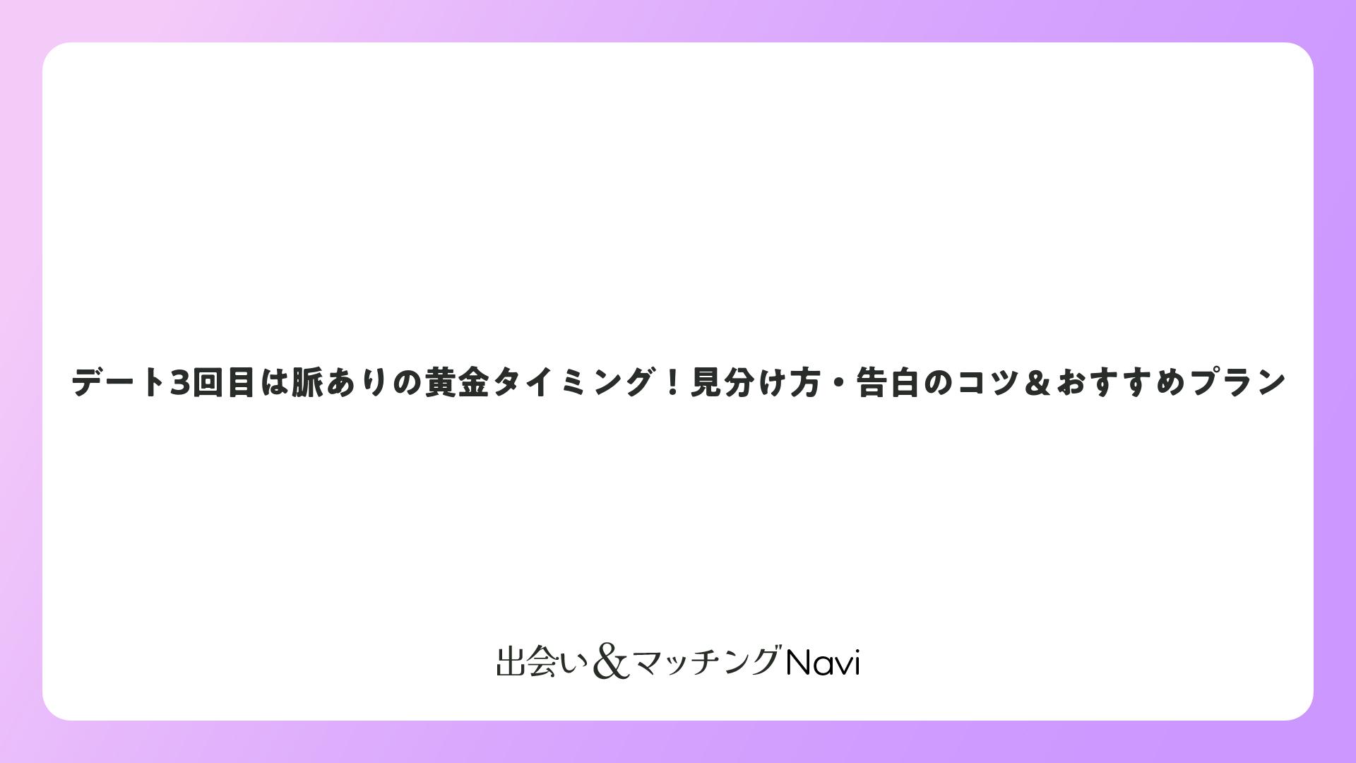 3回目に進んだ時点で好意は確実。会話の深さ、連絡の速さ、将来トークをチェックし、積極的にアピールしましょう。成功事例多数のこのステージを活かし、素敵なパートナーシップを掴んでください。