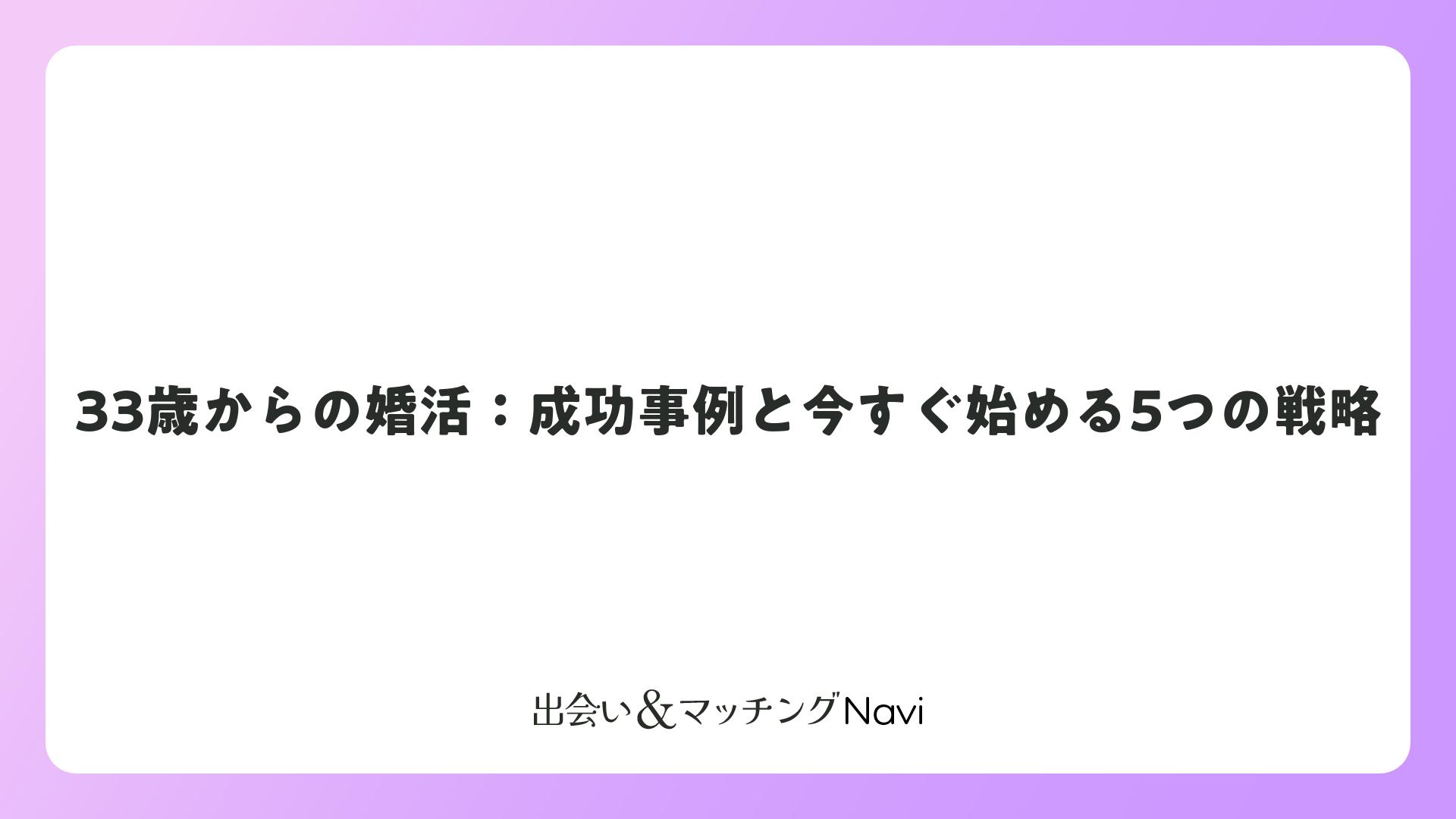 33歳からの婚活:成功事例と今すぐ始める5つの戦略をまとめました