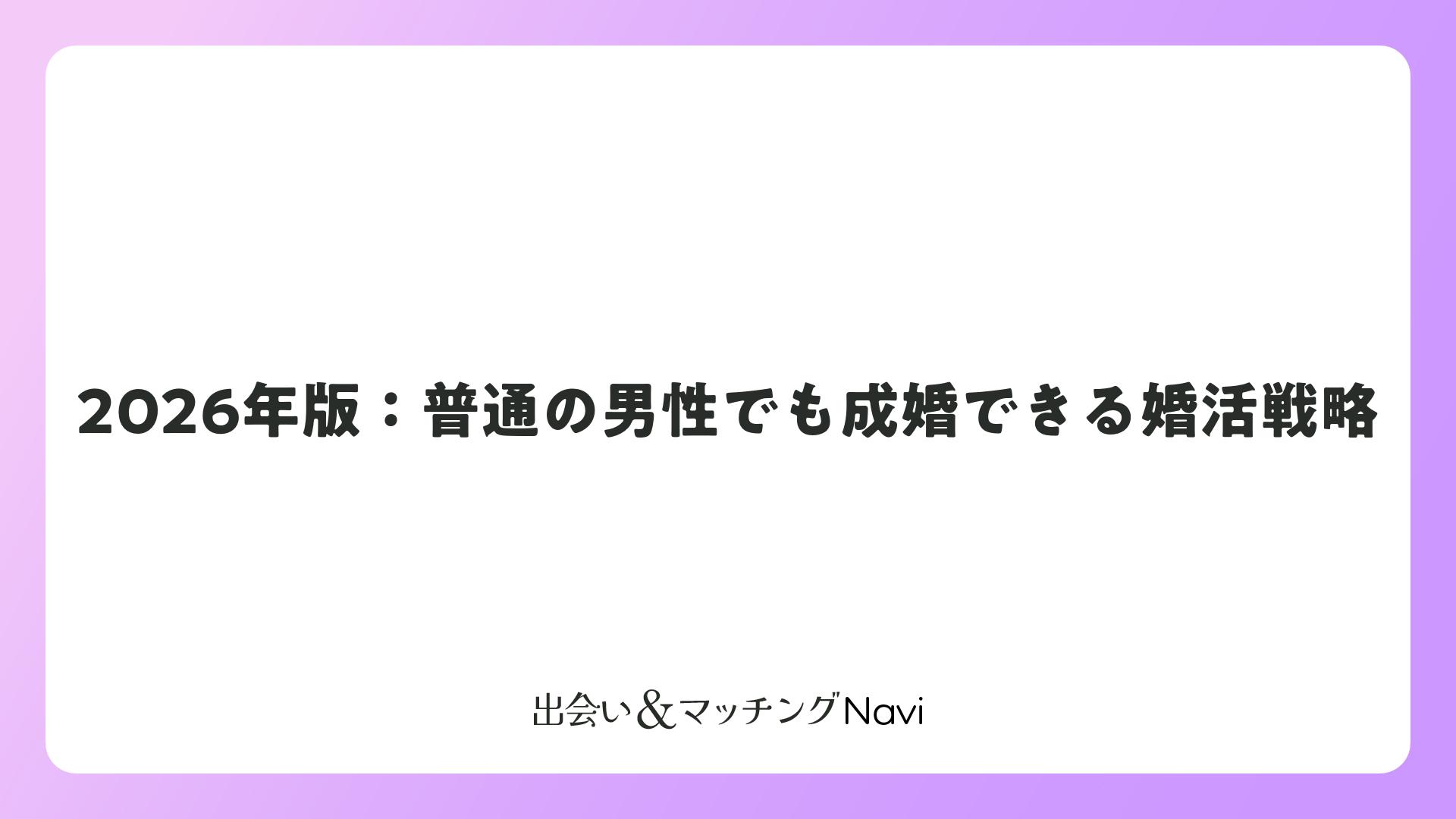 2026年版:普通の男性でも成婚できる婚活戦略をまとめました