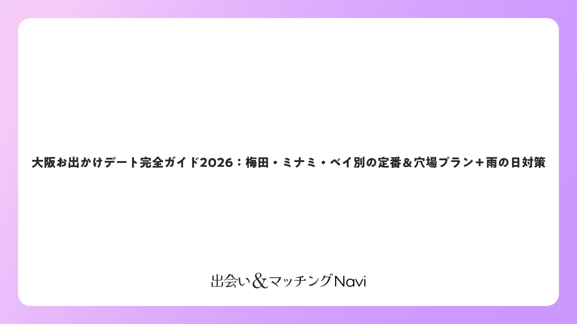 大阪お出かけデート完全ガイド2026:梅田・ミナミ・ベイ別の定番&穴場プラン+雨の日対策をまとめました