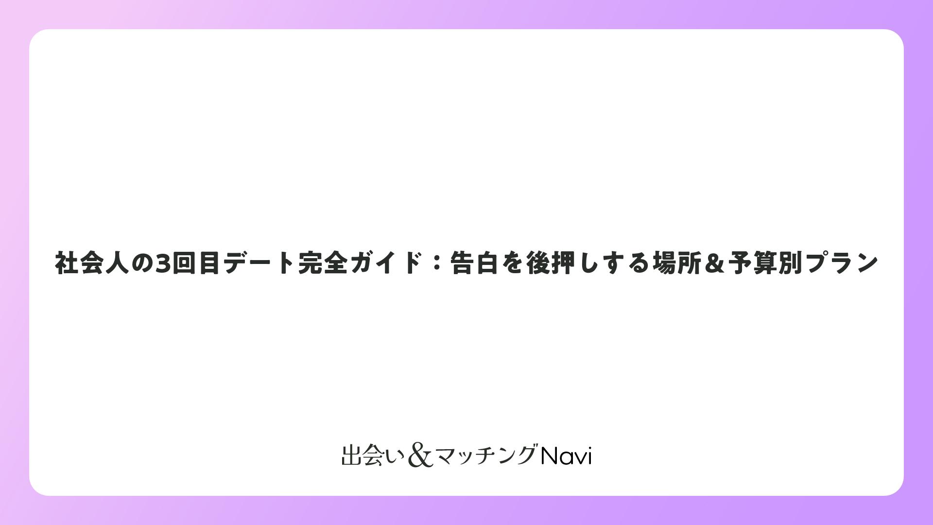 社会人にとって3回目のデートは、関係を深める重要なタイミングです。お互いの性格や価値観をより理解し、告白や次のステップへ進むきっかけになる場所選びが鍵となります。この記事では、社会人の忙しいスケジュールを考慮したおすすめスポットやプランを、全国の人気エリアから厳選して紹介します。リラックスしながらもワクワクする時間を過ごせるアイデアを満載でお届けします。