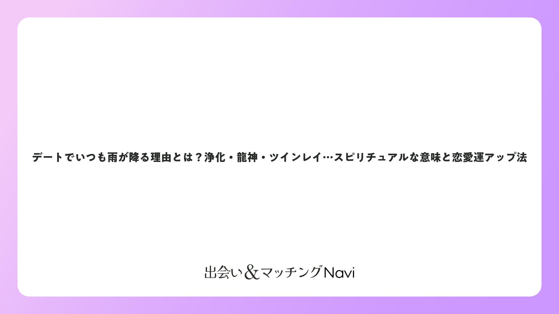 スピリチュアル的に、雨は「目覚め」のシンボル。デートで雨が降るたび、自分自身や相手の新しい一面を発見できるチャンスです。この現象をポジティブに解釈すれば、不安が喜びに変わり、関係が加速します。雨の日デートを「特別なイベント」として楽しむマインドセットが鍵です。