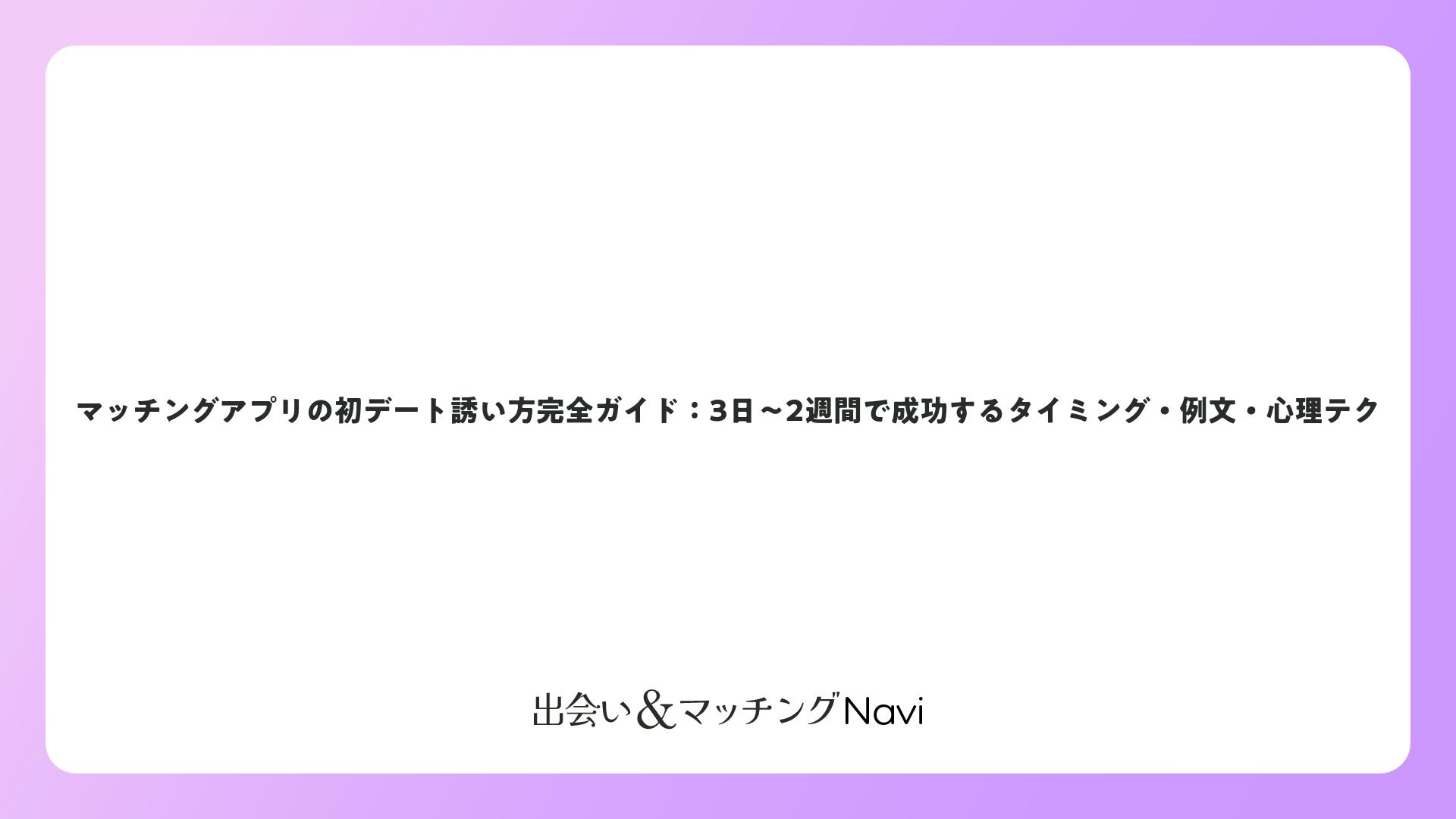 マッチングアプリの初デート誘い方完全ガイド:3日〜2週間で成功するタイミング・例文・心理テクをまとめました