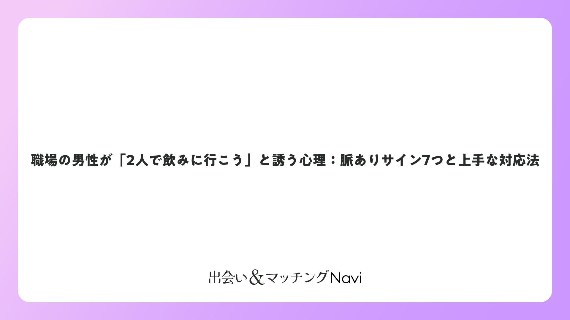 職場の男性が「2人で飲みに行こう」と誘う心理:脈ありサイン7つと上手な対応法をまとめました