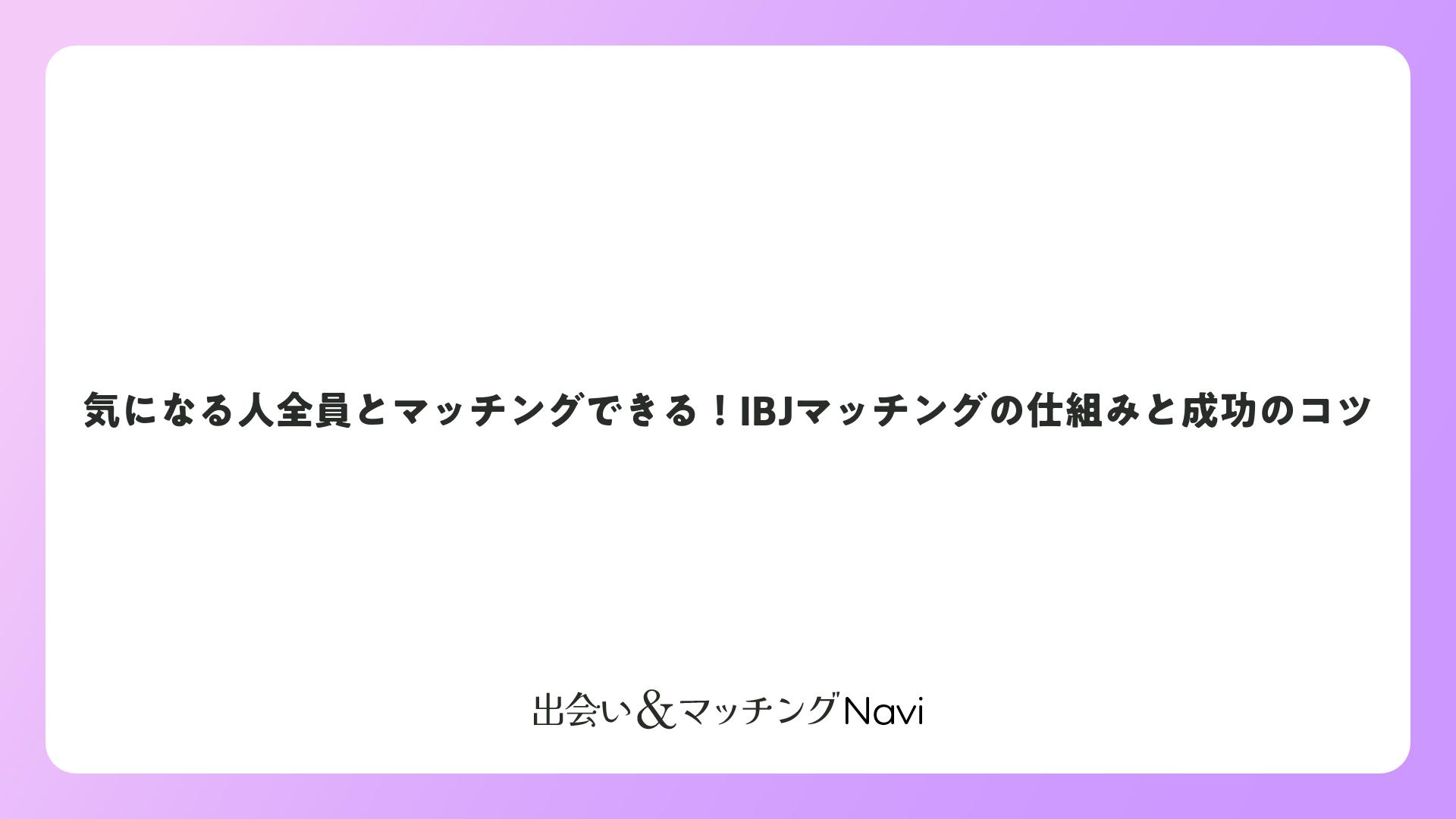 気になる人全員とマッチングできる!IBJマッチングの仕組みと成功のコツをまとめました