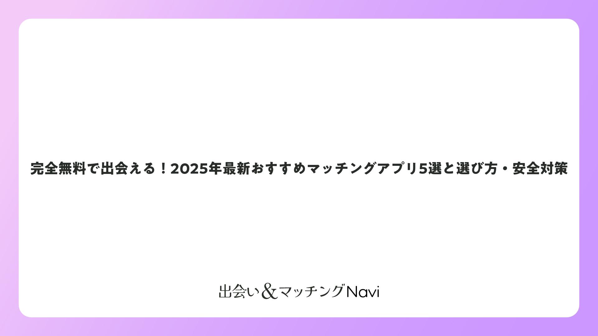 完全無料で出会える!2025年最新おすすめマッチングアプリ5選と選び方・安全対策をまとめました
