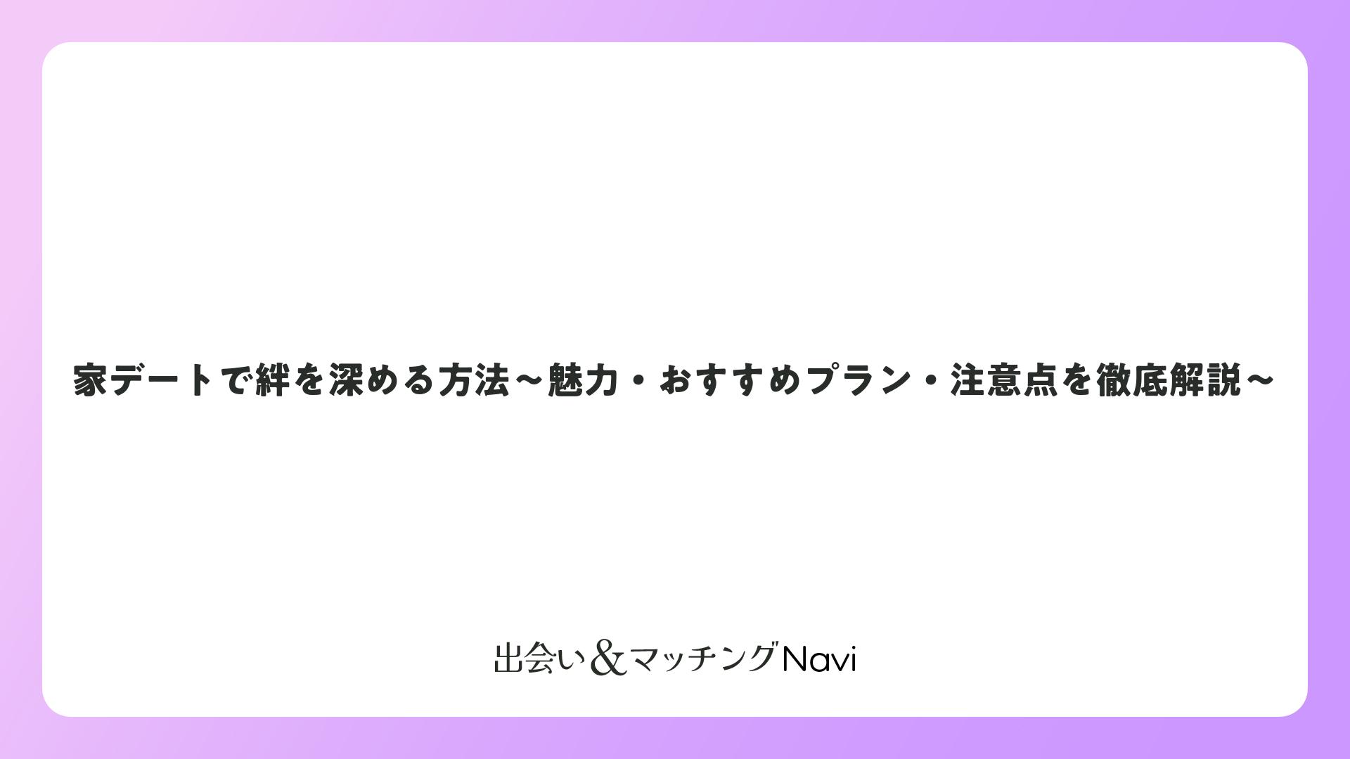 家デートで絆を深める方法〜魅力・おすすめプラン・注意点を徹底解説〜をまとめました
