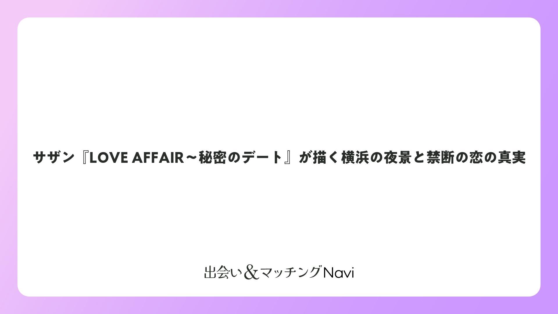 「LOVE AFFAIR~秘密のデート」は、ただの恋愛ソングではなく、秘められた愛の複雑さと切なさを描いた珠玉の作品です。横浜の情景とともに、誰にも言えない秘密の恋の世界を美しく表現し、多くのリスナーに感動を与え続けています。