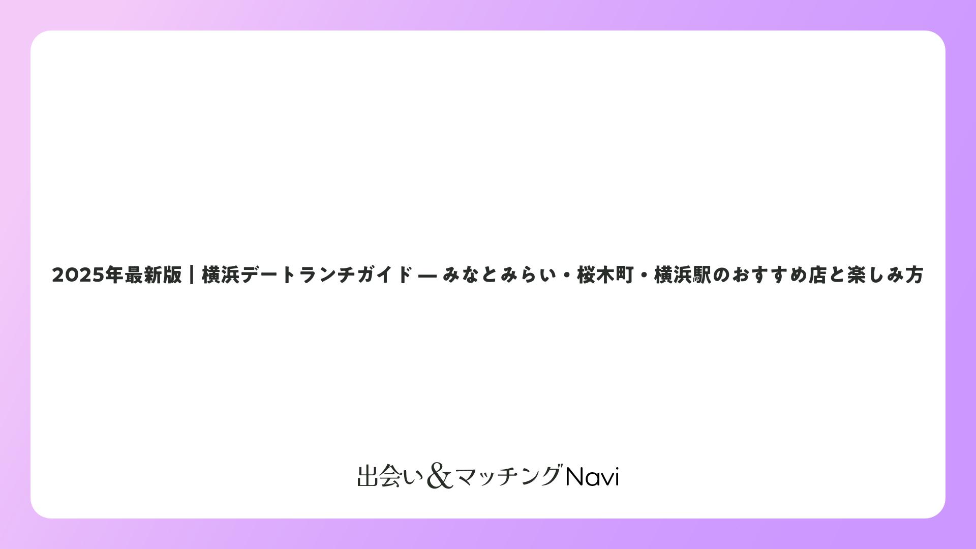 2025年最新版|横浜デートランチガイド — みなとみらい・桜木町・横浜駅のおすすめ店と楽しみ方をまとめました