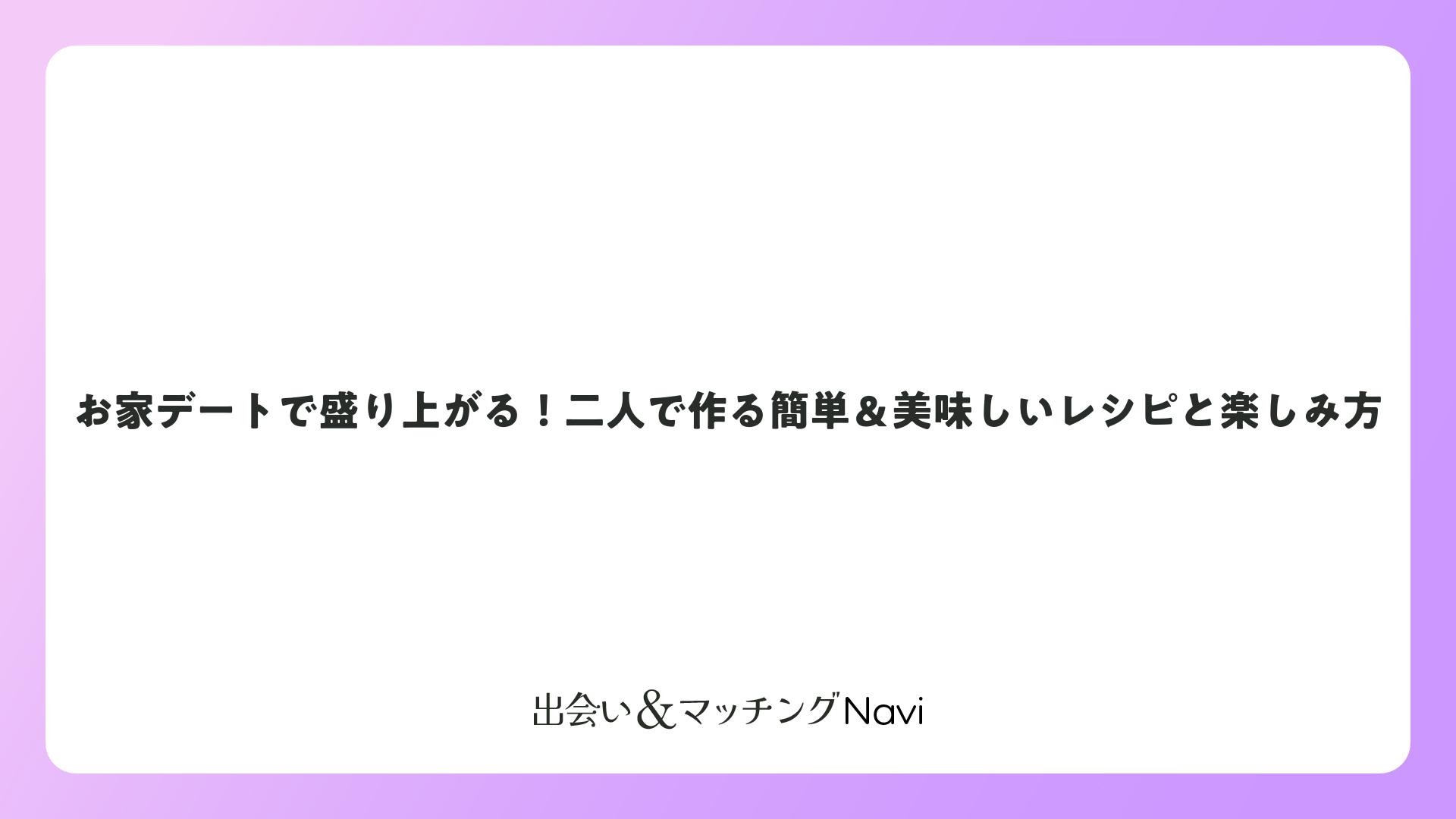 お家デートで料理を一緒に作ることは、コミュニケーションを深め、楽しい思い出を作る絶好の機会です。簡単で美味しいレシピを選び、二人で協力しながら作る時間を大切にしましょう。料理の楽しさと美味しさを共有することで、より良い関係を築くことができます。