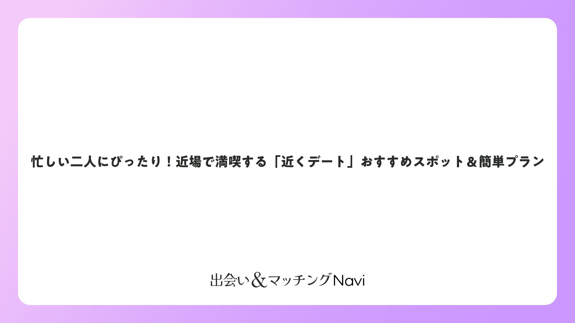 忙しい二人にぴったり!近場で満喫する「近くデート」おすすめスポット&簡単プランをまとめました
