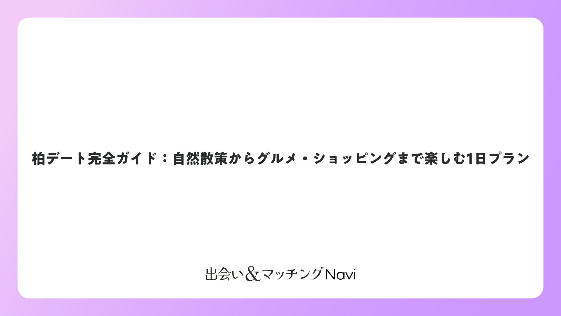 柏デート完全ガイド:自然散策からグルメ・ショッピングまで楽しむ1日プランをまとめました