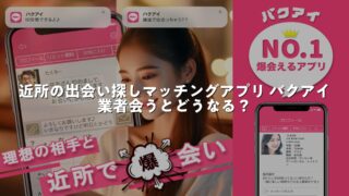 アプリ紹介 近所の出会い探しマッチングアプリ バクアイ 業者会うとどうなる?アプリを調査 近所の出会い探しマッチングアプリ バクアイとはバクアイは電話番号やメール不要で匿名利用もできる、近所で出会いを探すためのチャット型マッチングアプリです。掲示板や絞り込み検索、画像・動画送信など機能が充実していて、気軽に話しかけられる雰囲気が... 2025.10.05 アプリ紹介