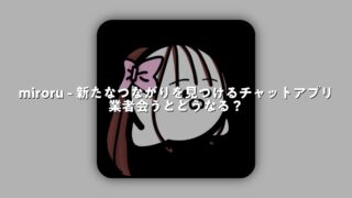 アプリ紹介 miroru – 新たなつながりを見つけるチャットアプリ 業者会うとどうなる?アプリを調査 miroru - 新たなつながりを見つけるチャットアプリとはmiroruは、気軽に「今話せる」相手を探してつながれるチャットアプリです。スワイプでのマッチングや投稿機能(miropos)を通じて、趣味や気分が合う人とすぐに会話を始められるの... 2025.10.09 アプリ紹介