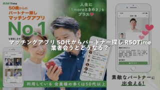 アプリ紹介 マッチングアプリ 50代からパートナー探し R50Time 業者会うとどうなる?アプリを調査 マッチングアプリ 50代からパートナー探し R50TimeとはR50Timeは50代以上をメインにしたマッチングアプリで、同世代と無理なく出会えるのが魅力です。プロフィール作成やメッセージテンプレート、相性ピックアップなど出会いをサポートす... 2025.10.09 アプリ紹介