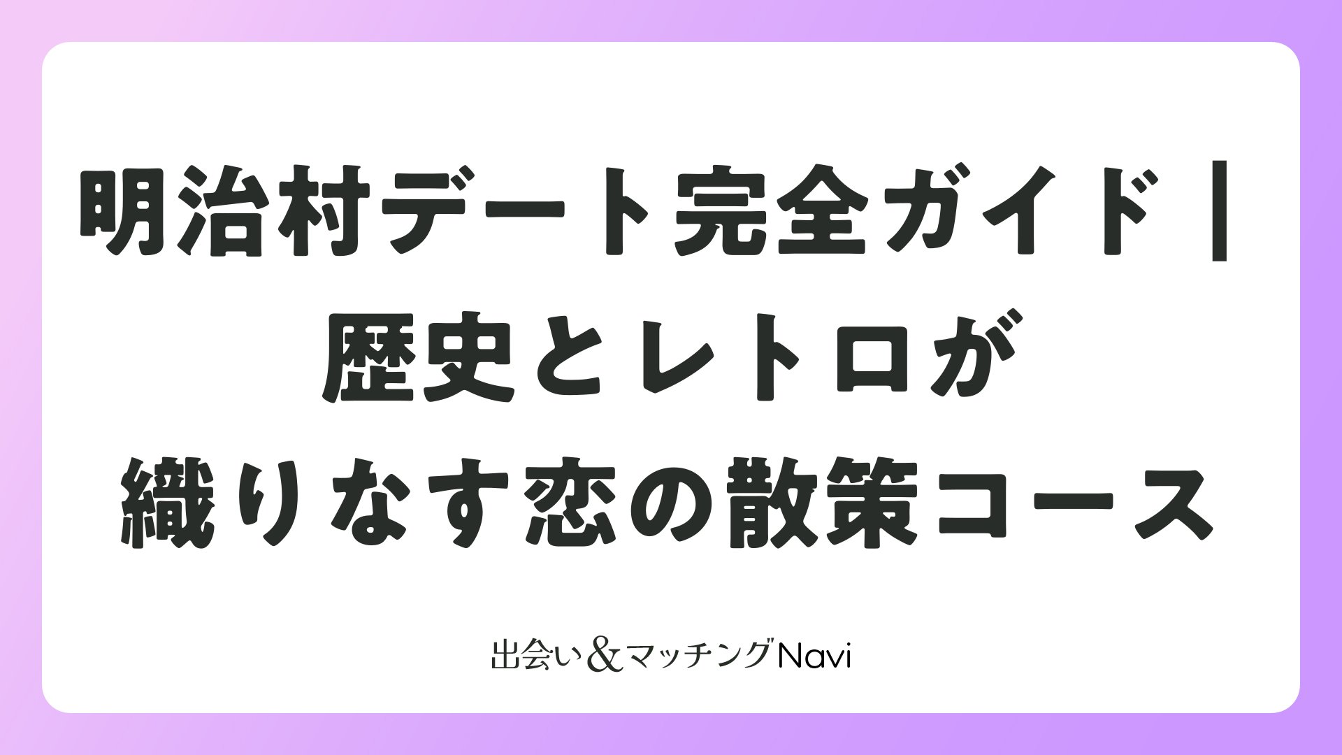 明治村はレトロ建築と自然が織りなす究極のロマンチックデートスポット。モデルコースを活用して、写真、グルメ、体験を満喫すれば、二人の関係が確実に前進します。マッチングアプリから生まれた恋を、ここで大切に育ててください。