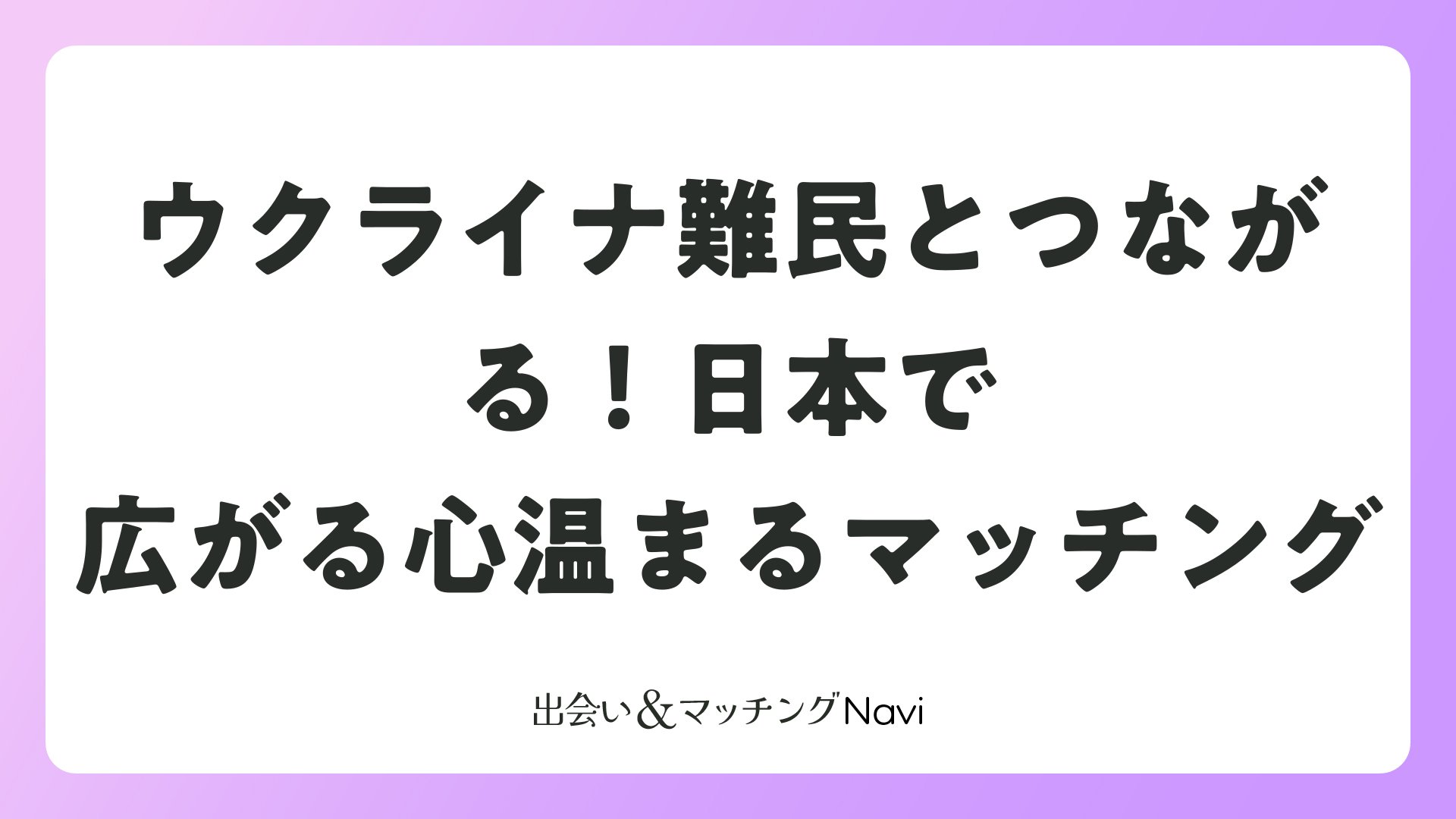 ウクライナ難民受け入れマッチングは、生活支援から始まる心のつながりが魅力。婚活・恋愛メディアの読者にとって、異文化の新鮮な出会いが最大の魅力です。情報登録から始め、ポジティブに臨めば、運命のパートナーに出会えるチャンス満載です。