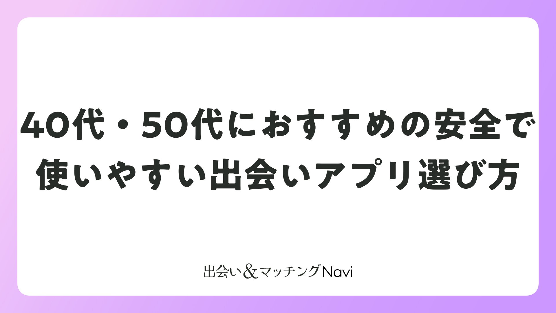 40代・50代におすすめの安全で使いやすい出会いアプリ選び方をまとめました