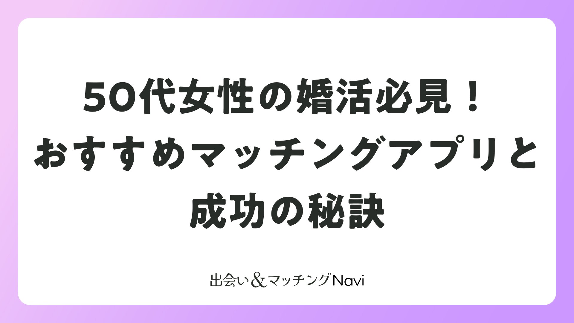50代女性の婚活必見!おすすめマッチングアプリと成功の秘訣をまとめました
