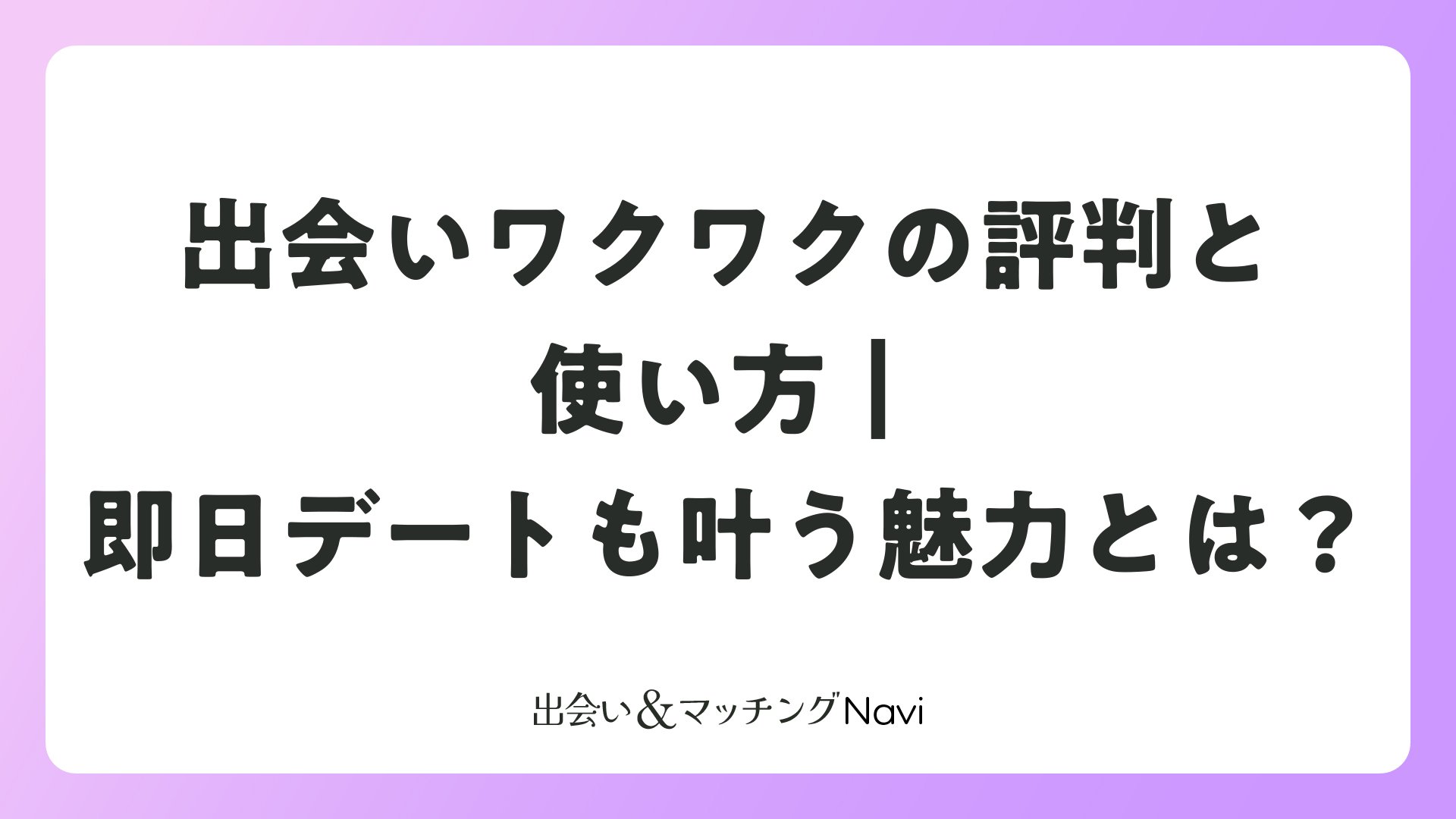 出会いワクワクは、出会いやすさ、料金の安さ、安心の安全性で総合的に高評価のサービスです。掲示板やコミュニティを活用すれば、気軽にデートを実現でき、多くのユーザーがポジティブな体験をしています。マッチングアプリとして、読者の皆さんの恋愛や出会いを豊かにするツールとしておすすめです。