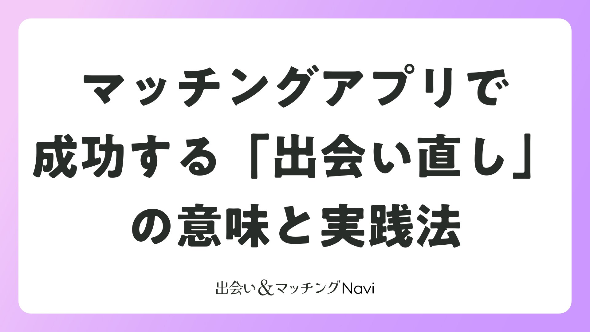 マッチングアプリで成功する「出会い直し」の意味と実践法をまとめました