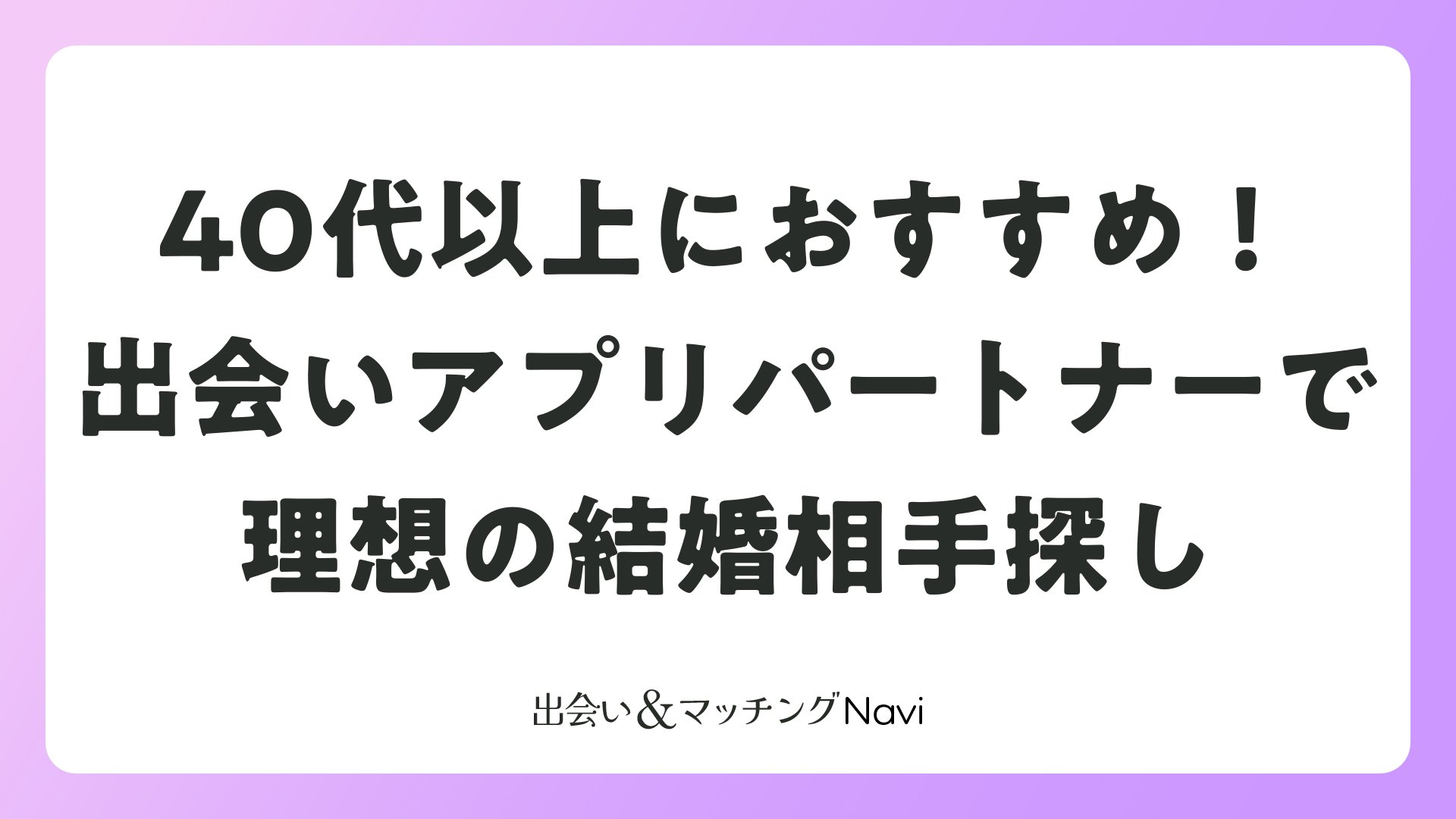 40代以上におすすめ!出会いアプリパートナーで理想の結婚相手探しをまとめました