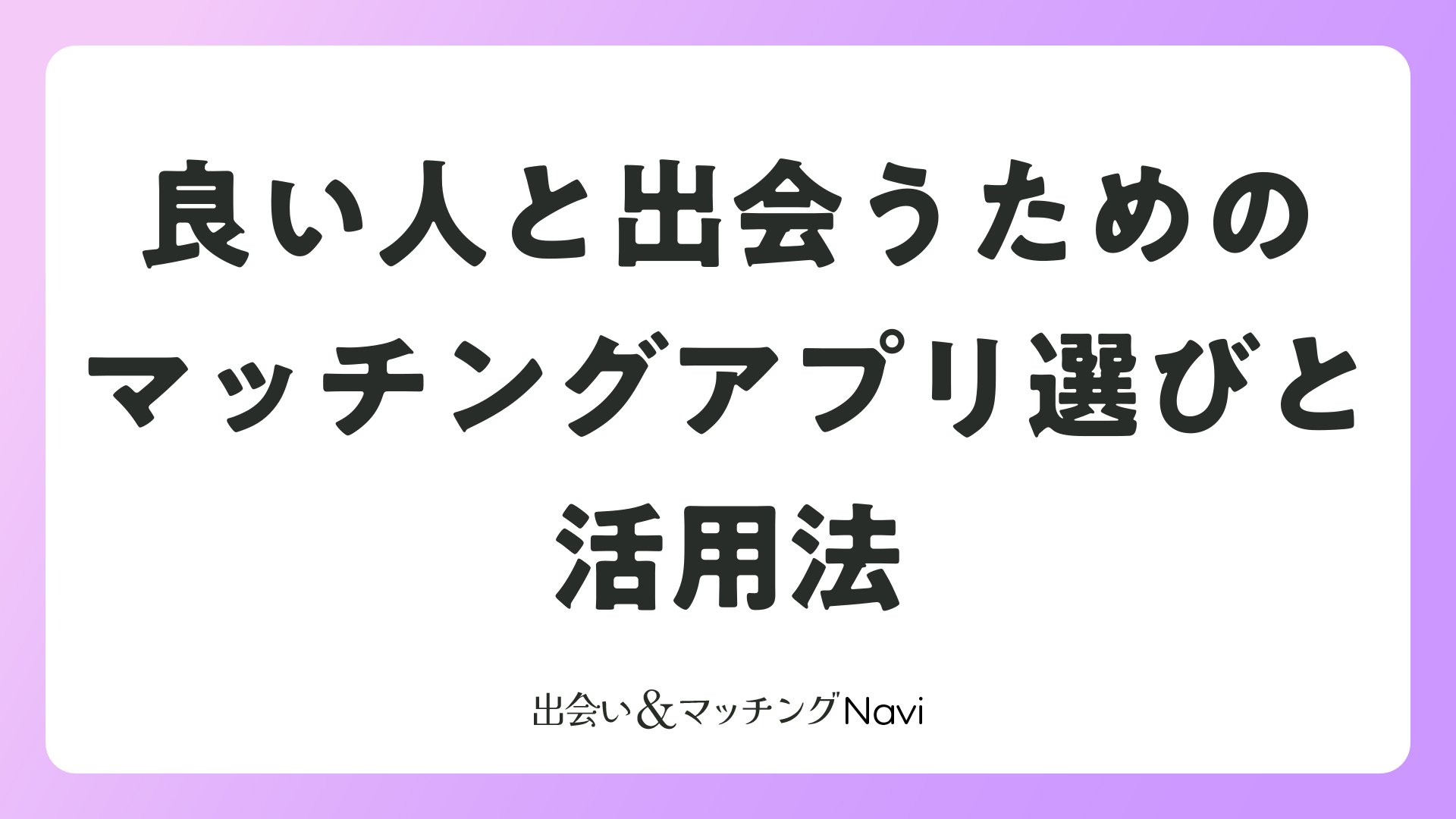 恋愛や結婚を望む多くの人にとって、良い人との出会いは人生における重要なテーマです。しかし、日常生活の中で理想的なパートナーに出会うことは容易ではありません。そこで注目されているのが、マッチングアプリを活用した出会いの方法です。本記事では、良い人との出会いを実現するためのマッチングアプリの選び方と活用方法について、詳しく解説します。