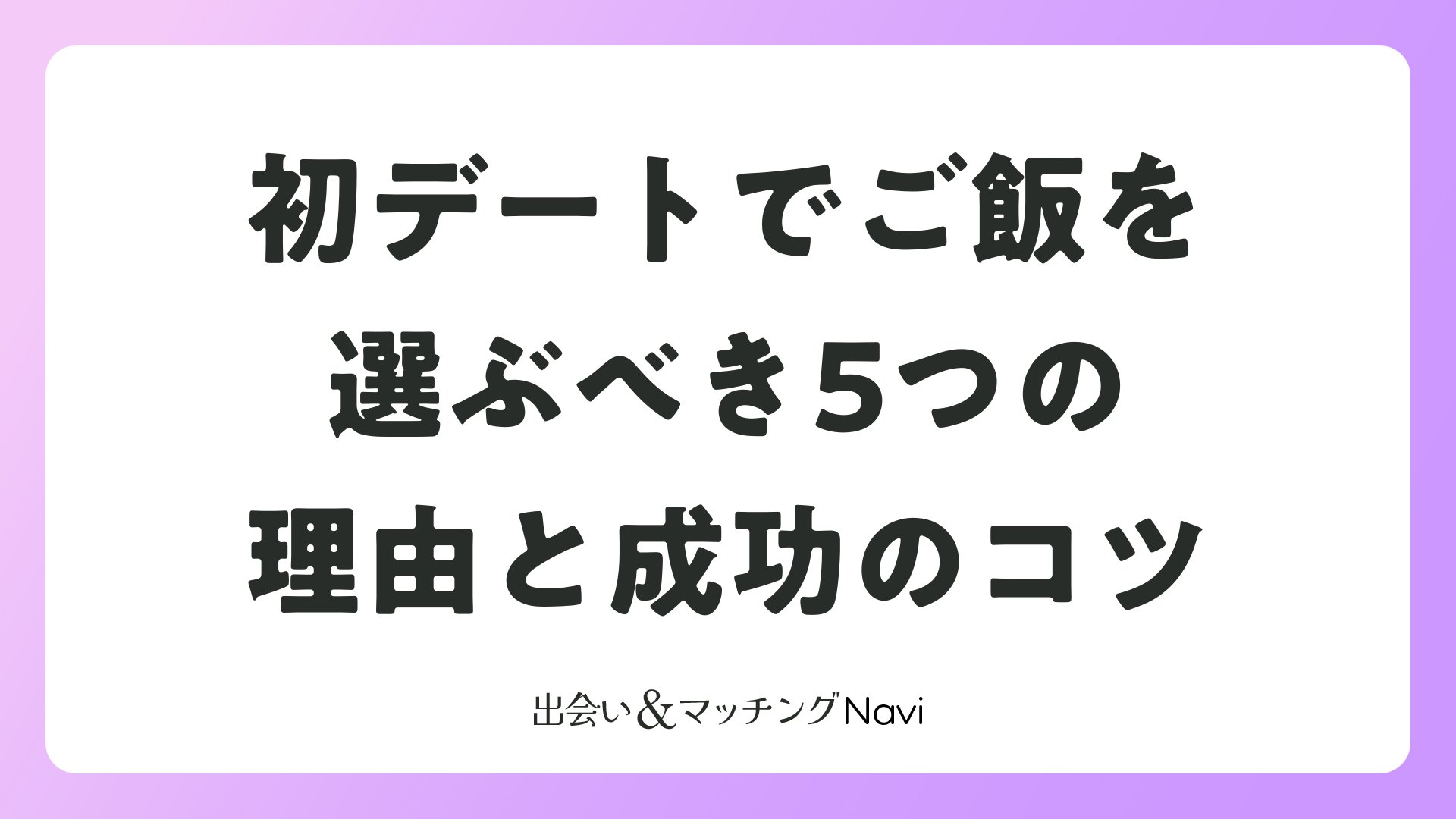 マッチングアプリの初デートはご飯が最適選択。警戒心を解き、コスパ良く誠実さを伝え、次回へつなげられます。お店選び、会話、フォローまで実践すれば、恋愛・婚活が加速します。