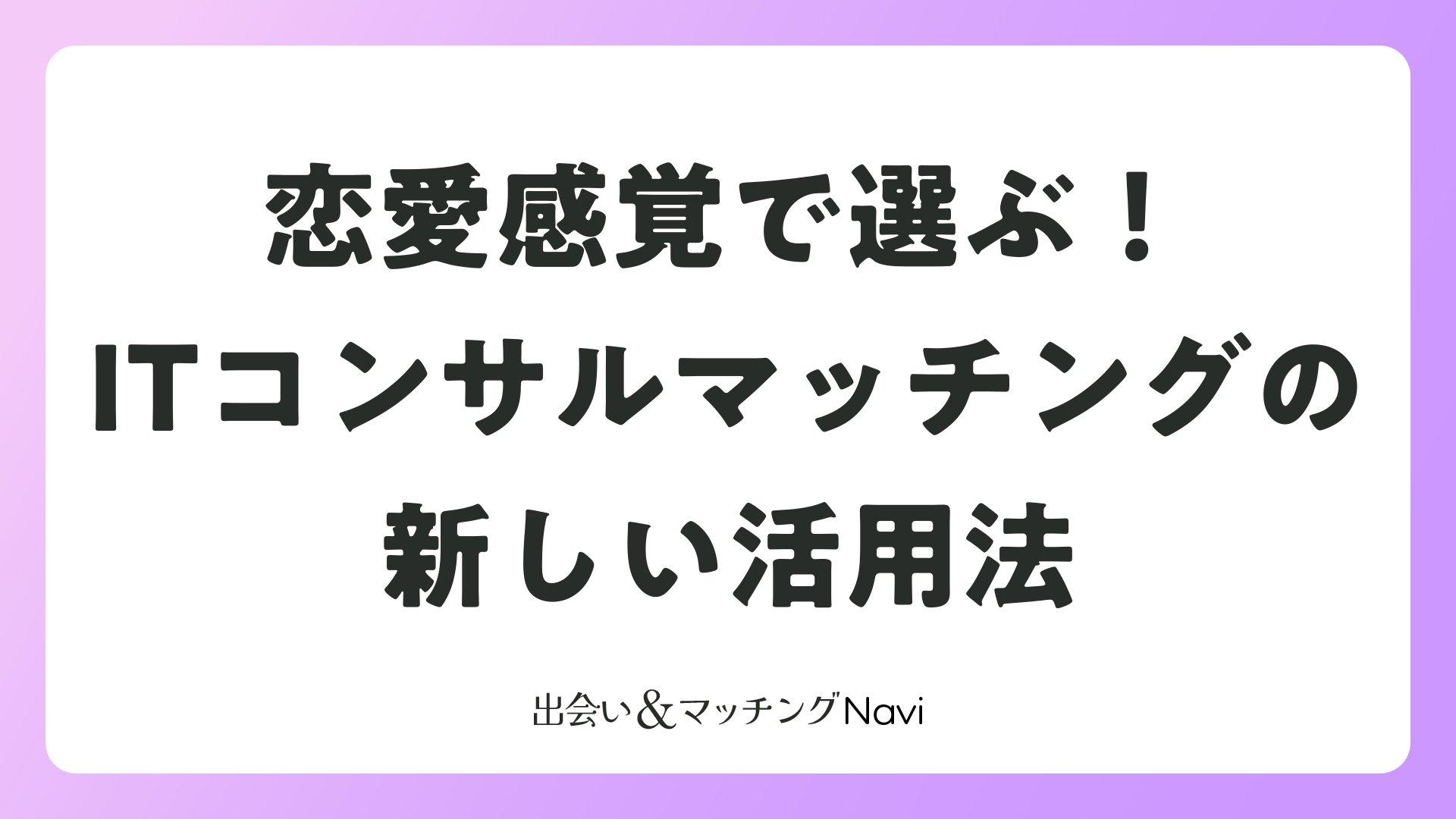 ITコンサルマッチングは、スキル豊かなITコンサルタントと企業を恋愛アプリのように繋ぐ画期的なサービスです。この記事では、ITコンサルマッチングを婚活や恋愛の視点で捉え、読者の皆さんが理想のパートナー(案件)と出会うためのポジティブな活用法をお伝えします。マッチングアプリで運命の人を探すように、プロフィール検索やメッセージ交換で相性の良い案件を見つけましょう。