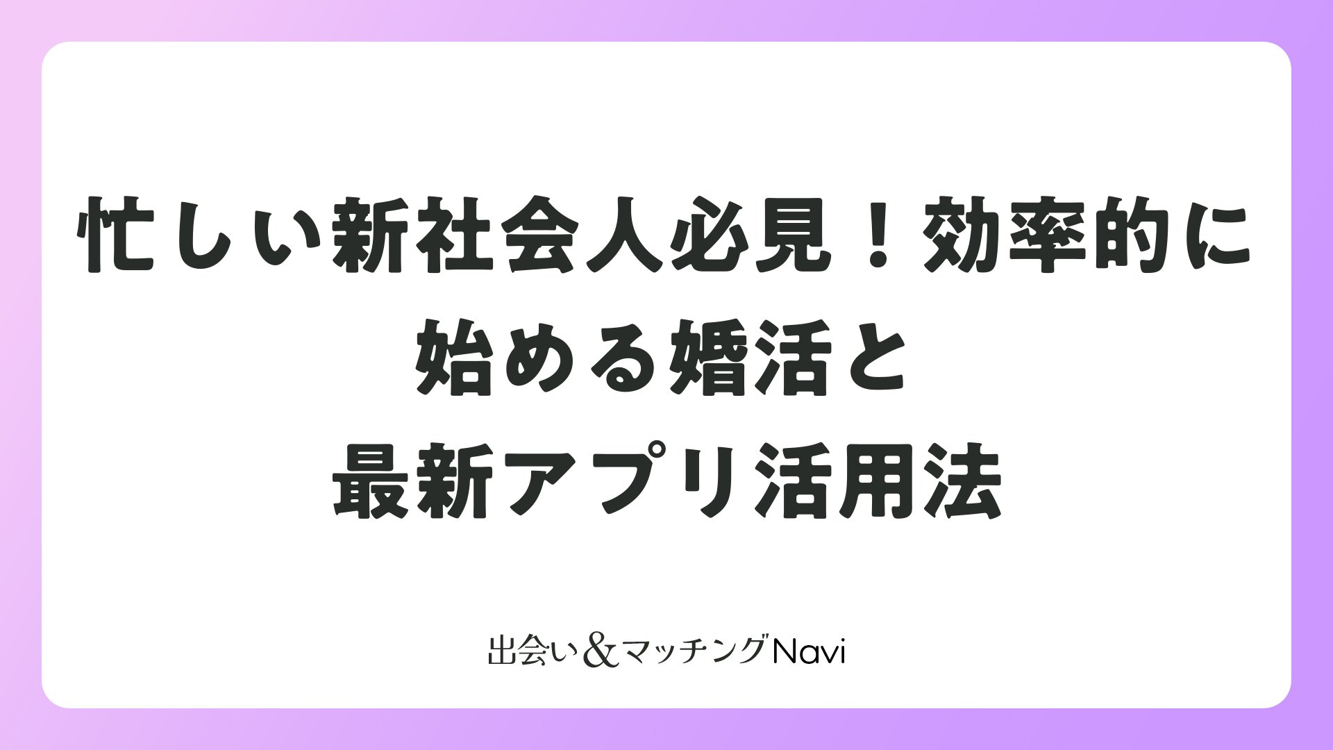 忙しい新社会人必見!効率的に始める婚活と最新アプリ活用法をまとめました